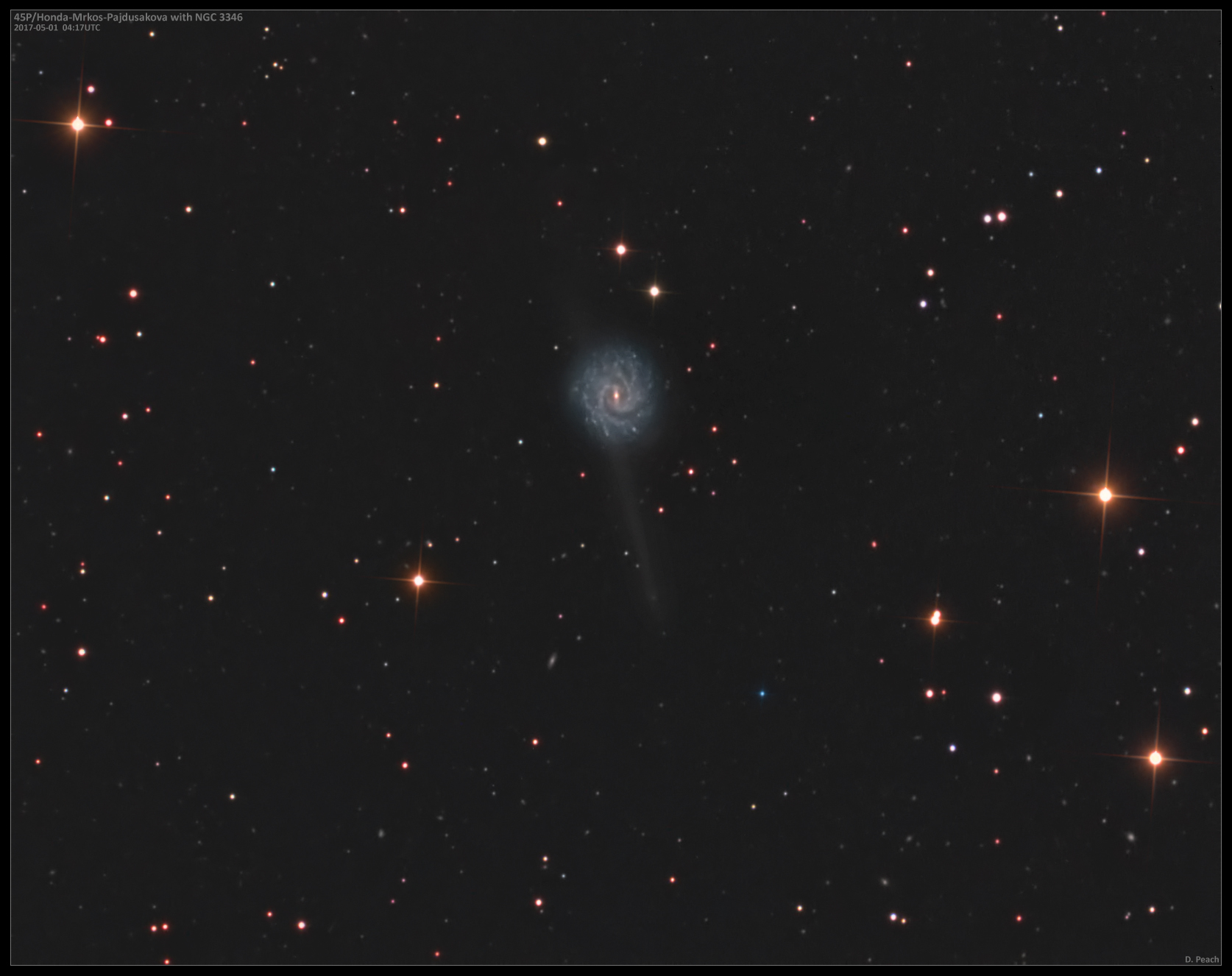 May 1st, 2017. Comet 45P passing NGC 3346.