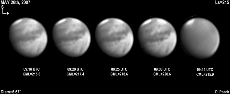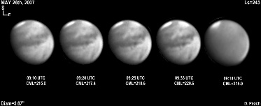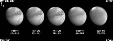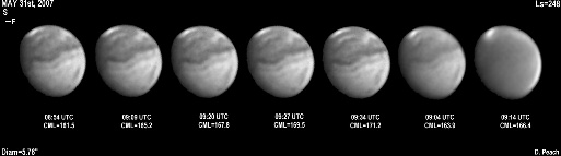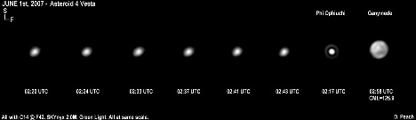 During May-June 2007 I returned to Barbados for the third time to again conduct a program of High Resolution imaging of the Planets. Specific goals this time were as before an extensive program of Jupiter imaging, which from back home had become impossible to study at high resolution due to its far southerly declination. Indeed, even from Barbados the altitude had dropped to "only" 55deg at the meridian. Additional aims were also an extensive Venus imaging and Lunar program. Mars was also well placed before sunrise at about 5 arc seconds in diameter, as well as a very favourable opposition of the asteroid Vesta which i hoped to obtain images of.