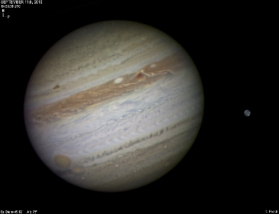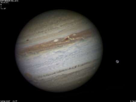 September 11th, 2010. Only fair to good seeing as two solid days of poor weather cleared away. Ganymede nearby with spot Z prominent with a dramatic NEB rift nearby.
