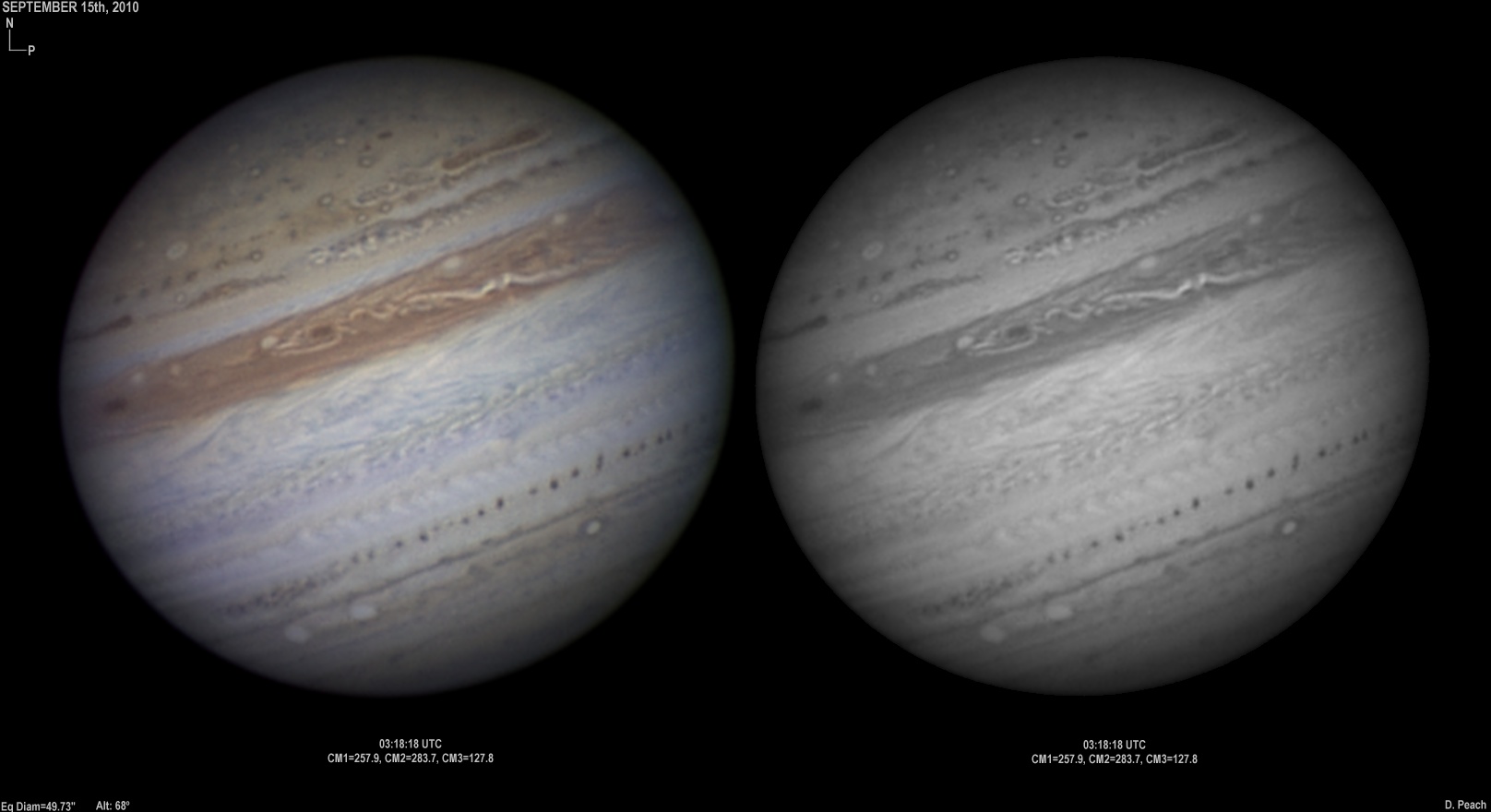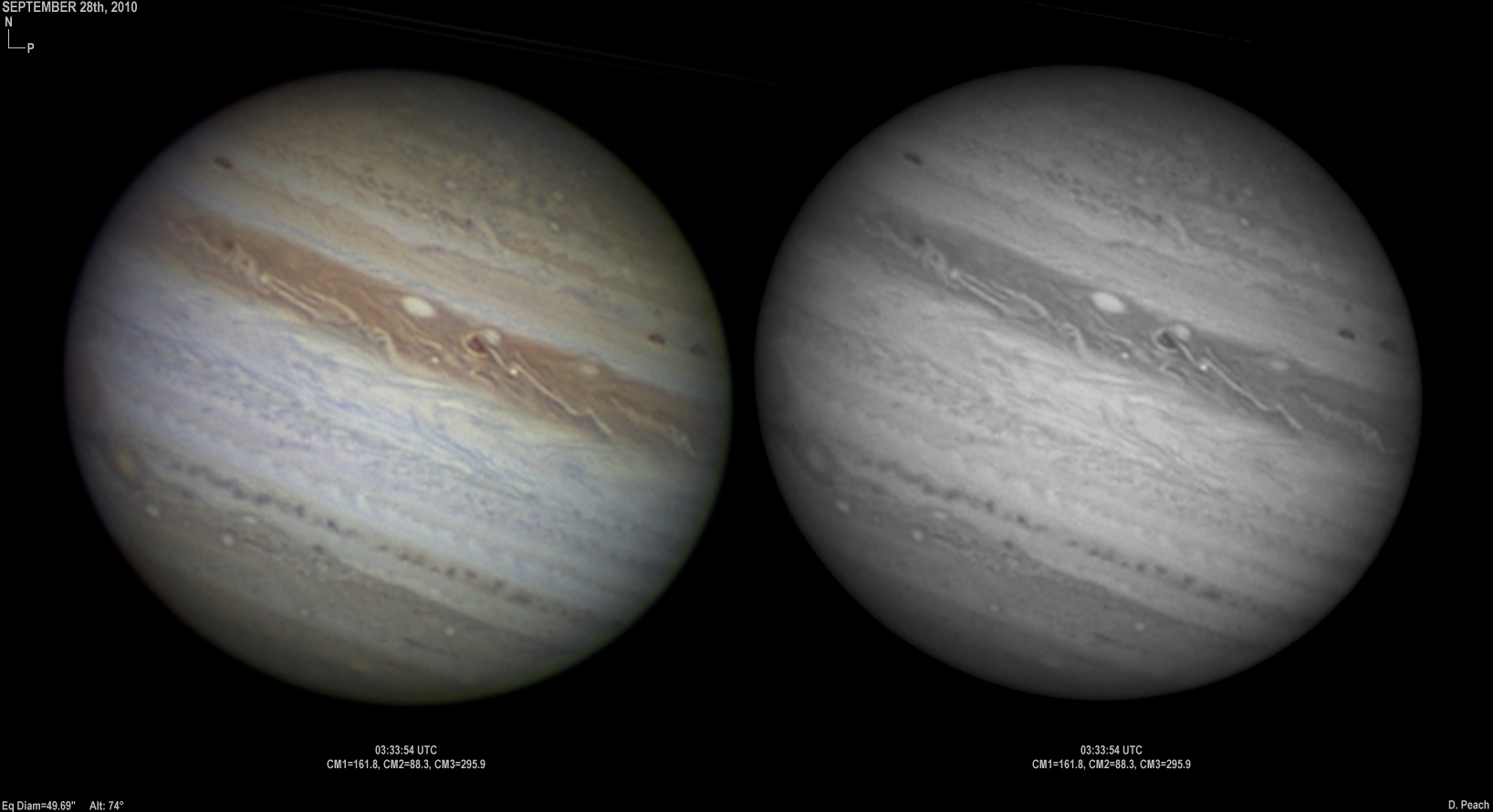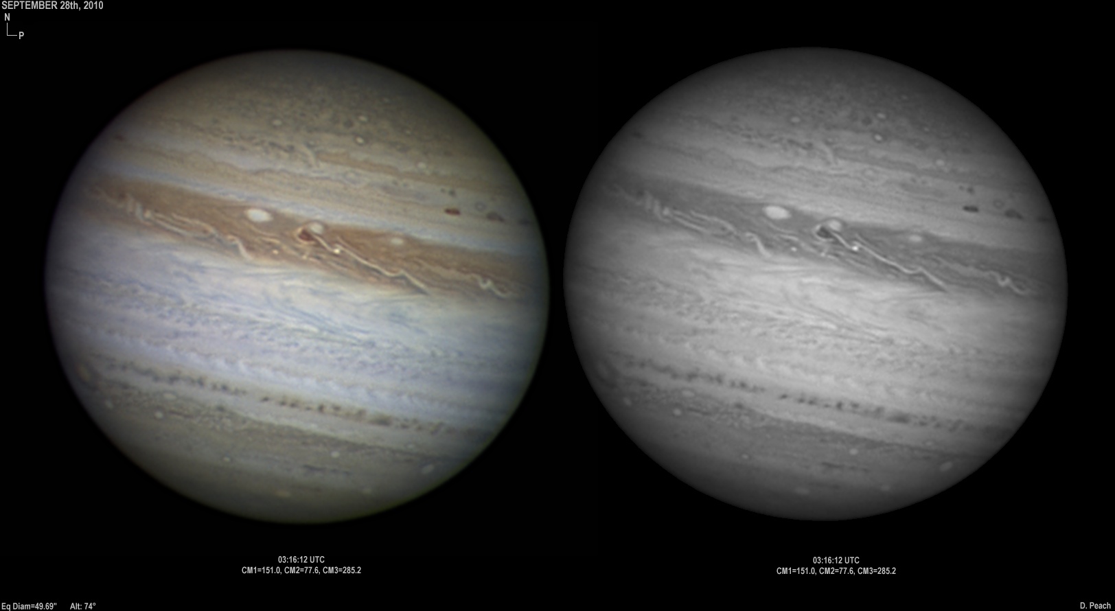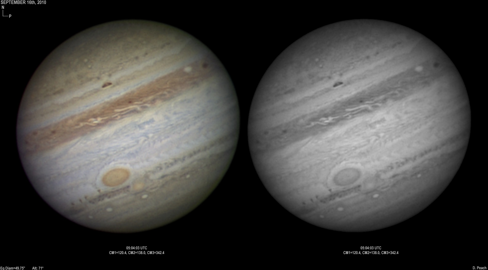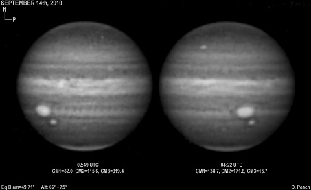 September 20th, 2010. After overcast skies the previous night, skies again cleared with good seeing conditions. Note the two ovals in the NEB closing up.
