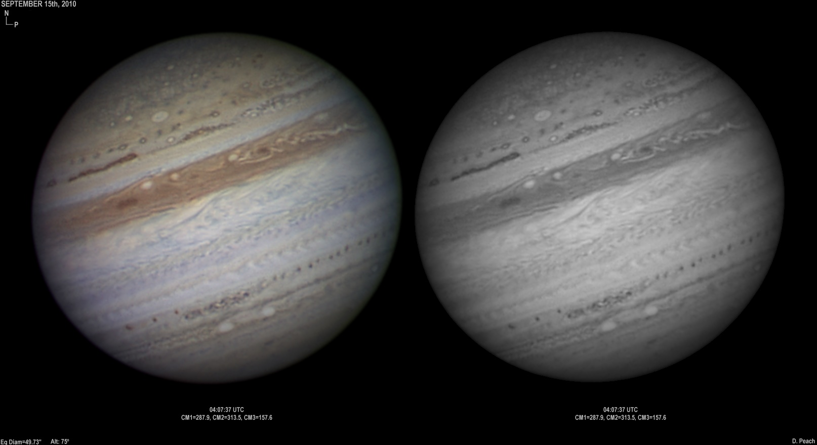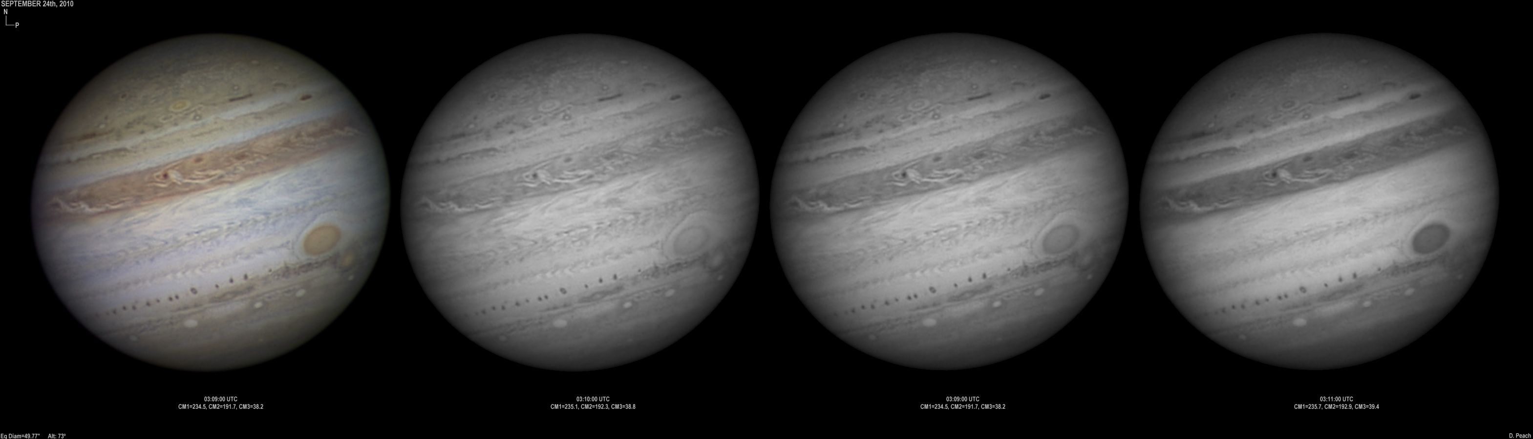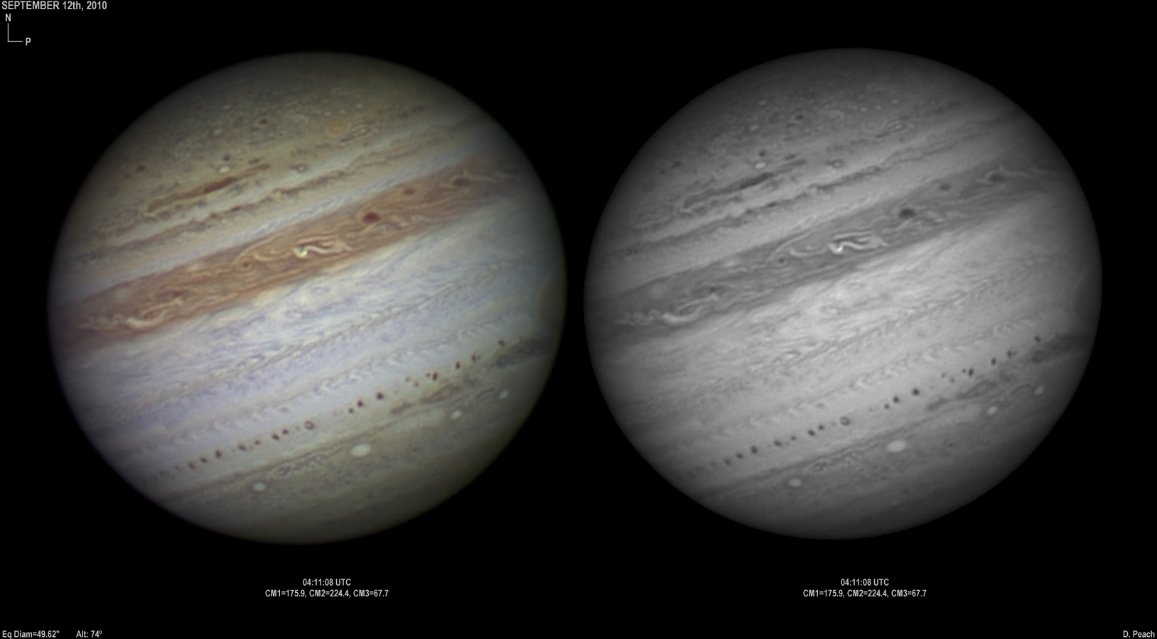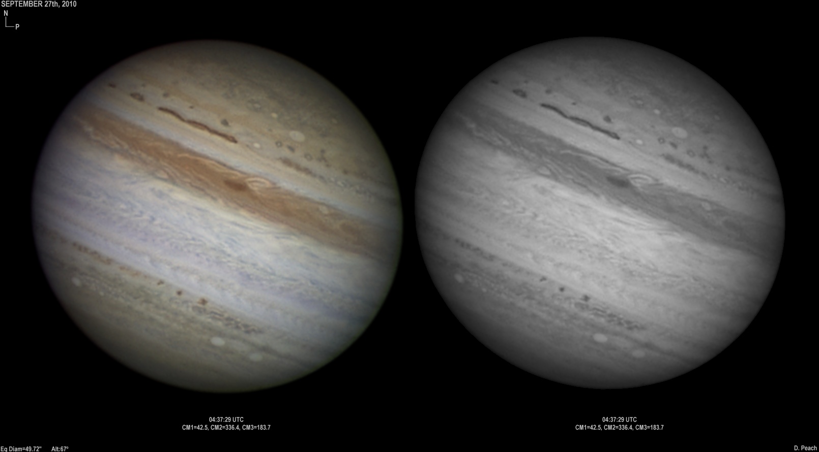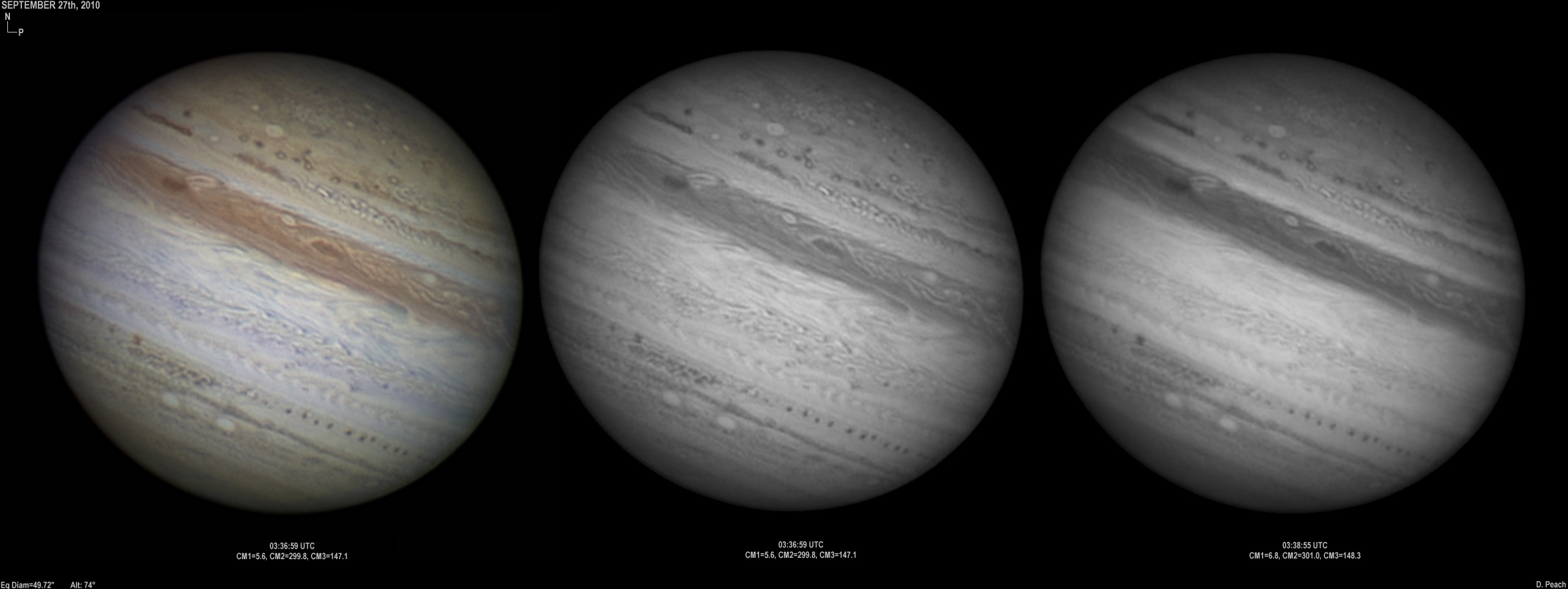 September 20th, 2010. After overcast skies the previous night, skies again cleared with good seeing conditions. Note the two ovals in the NEB closing up.