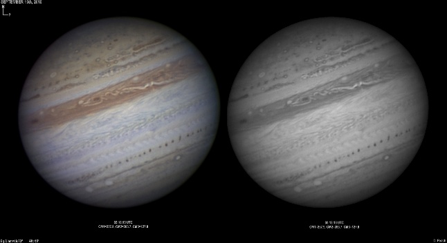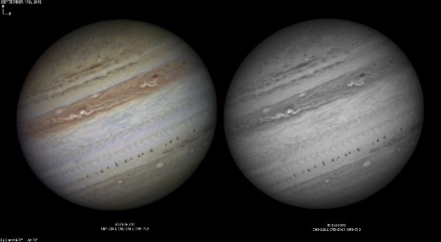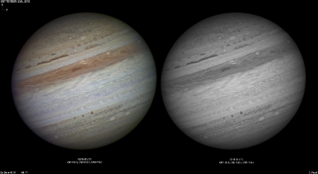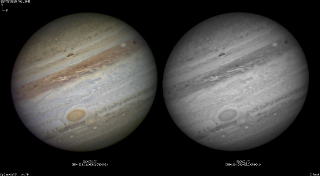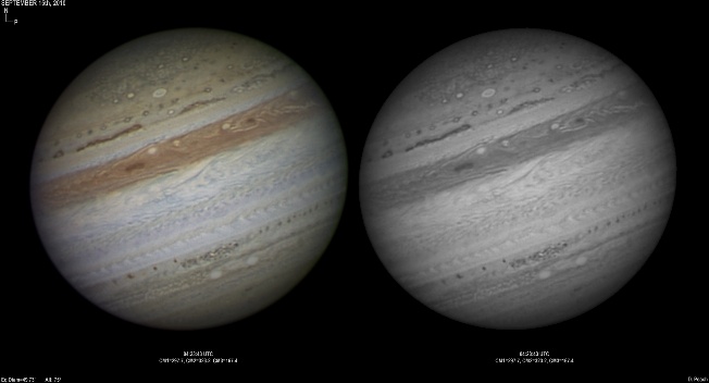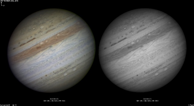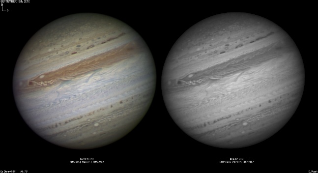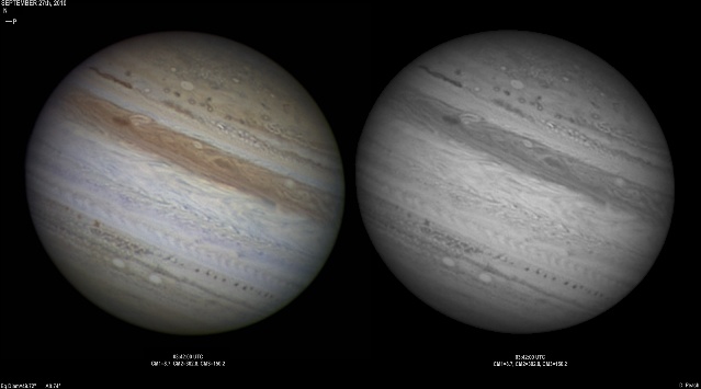 September 16th, 2010. Deteriorating conditions on this night with high clouds from Hurricane Igor causing problems seriously reducing transparency. Despite this some good results were obtained of the GRS and Oval BA hemisphere.