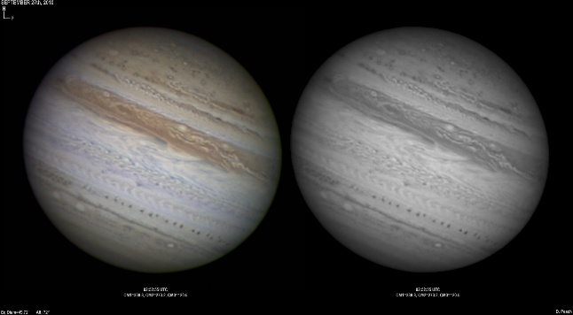 September 27th, 2010. Excellent seeing conditions again. Note the two ovals in the NEB continue their merger.