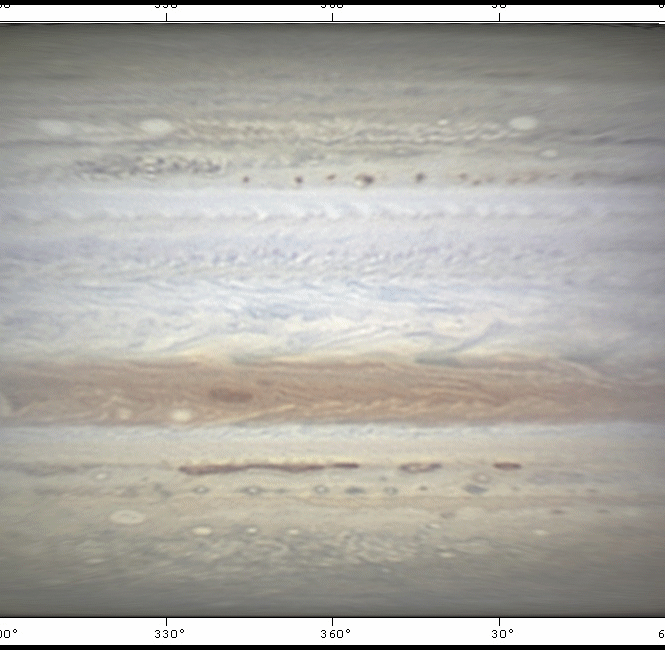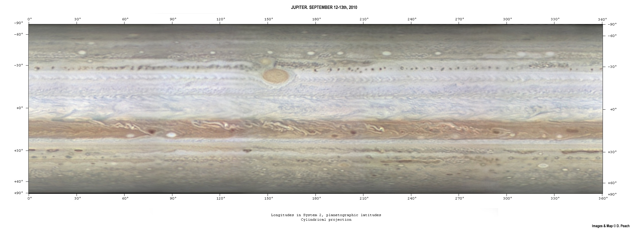 Jupiter 2010 - Cylindrical map of the entire Planet, Sep 12-13th, 2010.