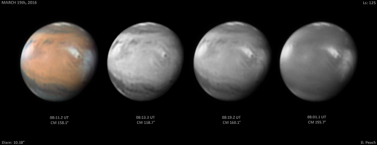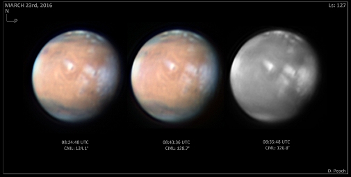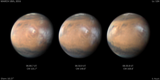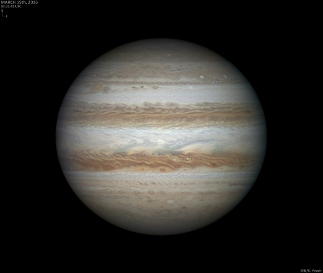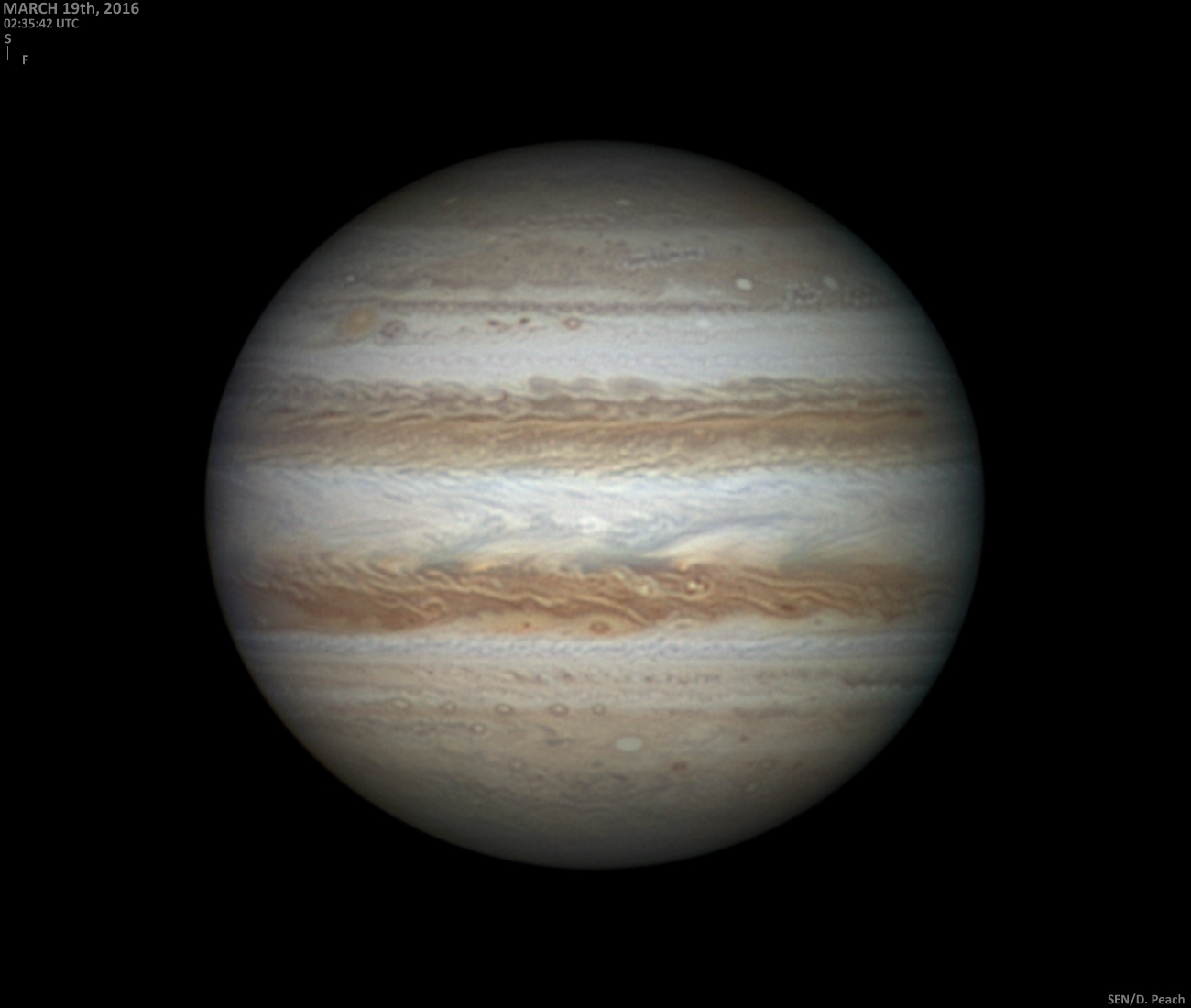 March 27th, 2016. Good conditions. Small storms and the polar hexagon are clearly visible.
