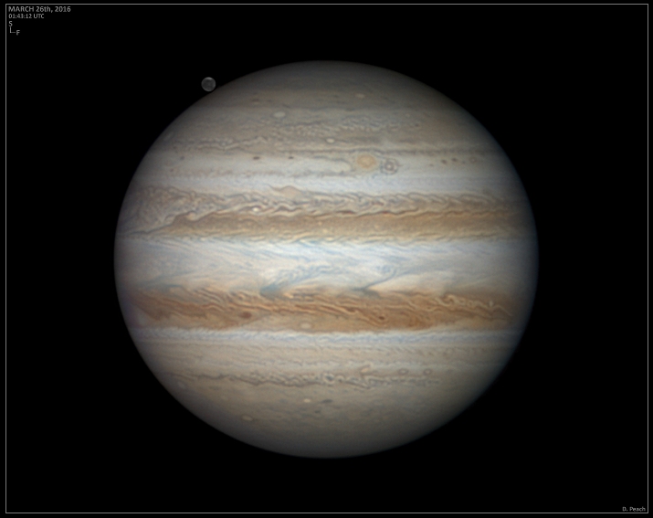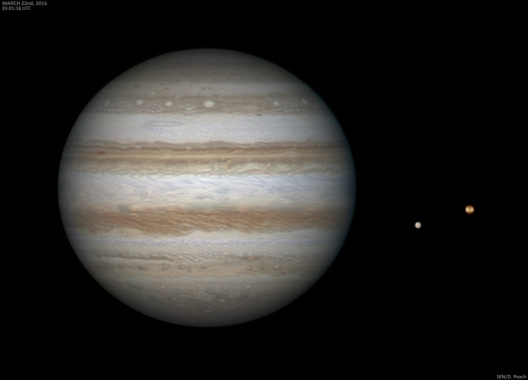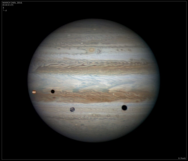 Jupiter on March 22nd, 2016. Excellent seeing conditions. Io and Europa alongside and in transit later on.