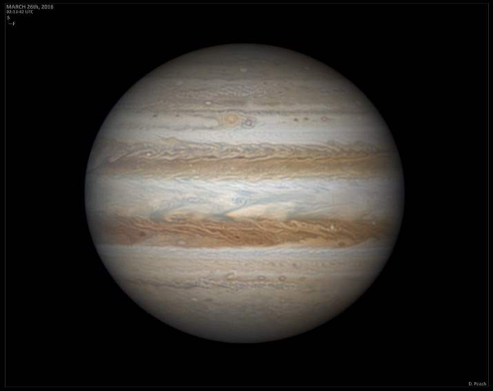 Jupiter on March 20th, 2016. Good seeing conditions.