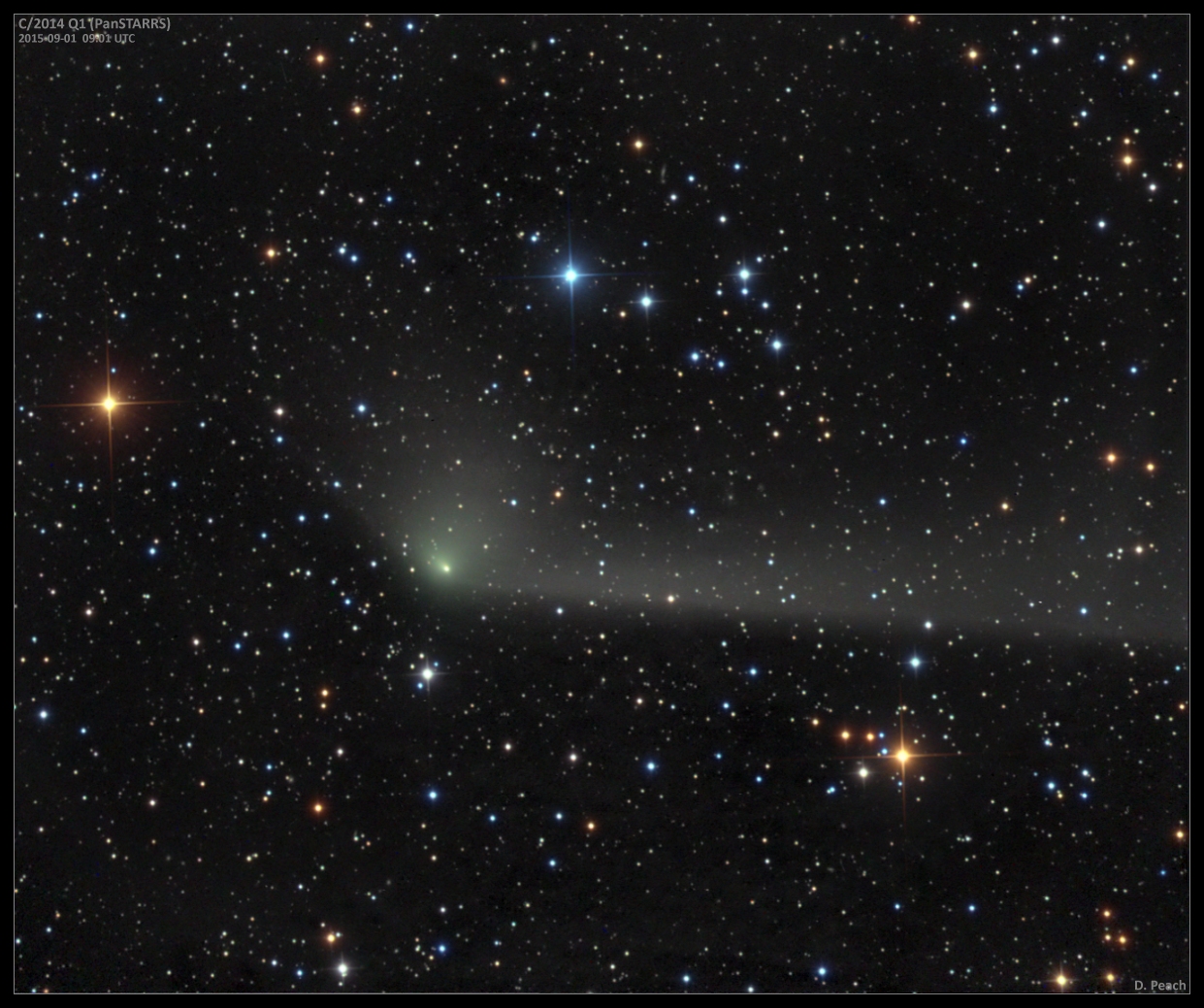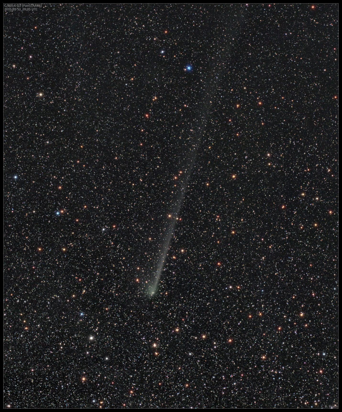 September 16th, 2015 FSQ106 with FLI camera. Unfiltered image. NGC 5128 below the comet.