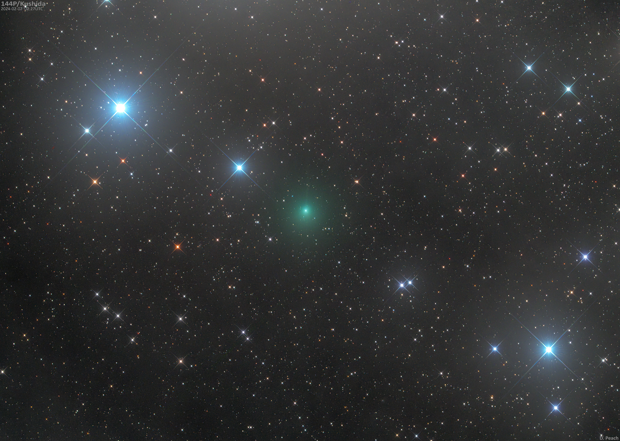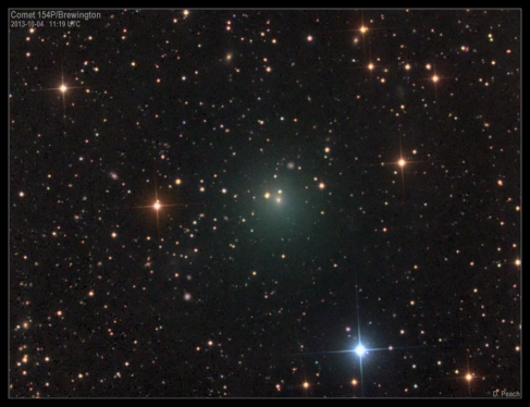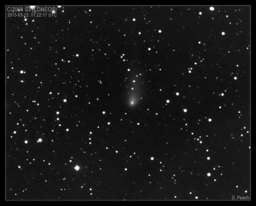 Discovered on March 11th, 2013 by Masayuki Iwamoto of Japan, this comet at the time of writing is located in Aquarius and fairly bright at 12th magnitude. In the above image a very faint dust tail can be seen .