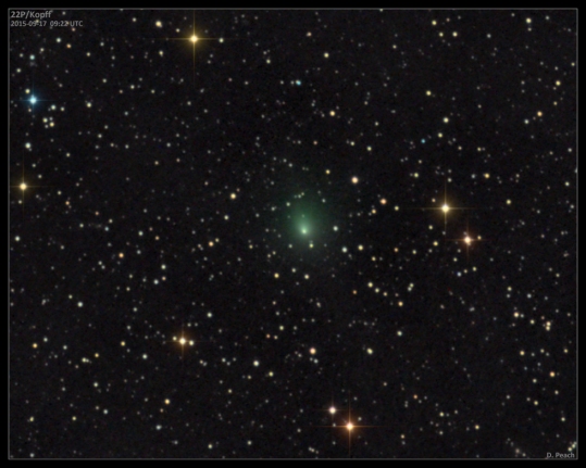 Discovered in October 1989 this periodic comet has an orbital period of just over 8 years. It next comes to perihelion in March 2014. In the above image it displays a faint tail and condensed coma region.
