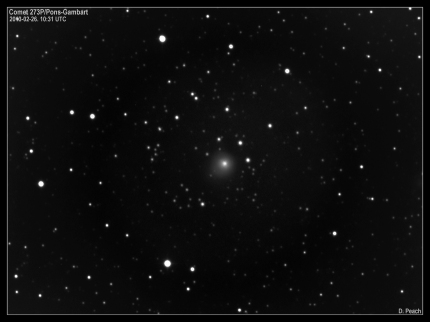 Comet 273P/ Pons-Gambart 17" F4.5 Planewave CDK. FLI CCD camera. 5 x 60secs. Feb 2013.