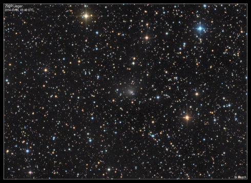 Discovered in 1986 this periodic comet has an orbital period of 6.8yrs. It is barely detected in the above images glowing dimly at ~20th mag.
