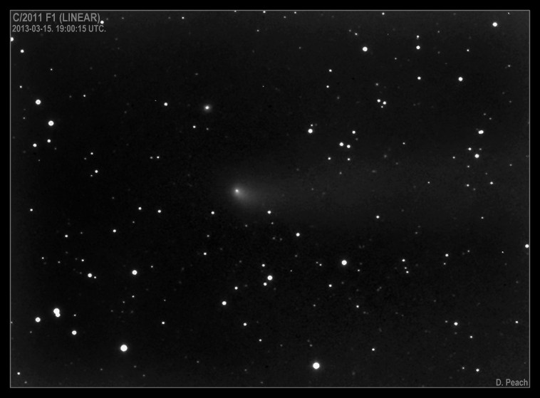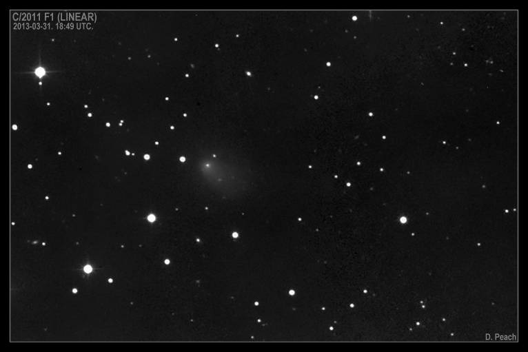Comet C/2011 F1 (LINEAR) 20" F4.5 Planewave CDK. FLI CCD camera. 4 x 2mins. March 17th, 24th and 31st, 2013.