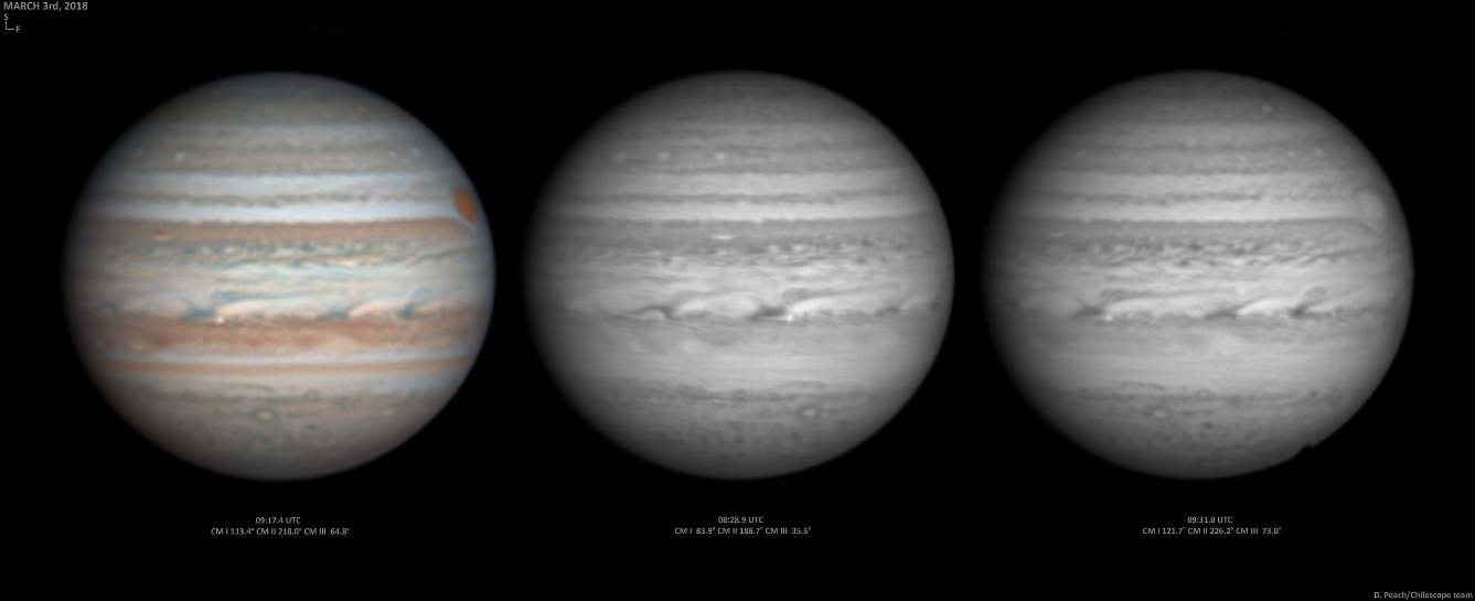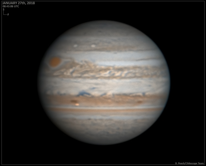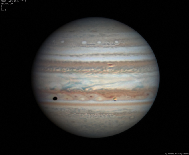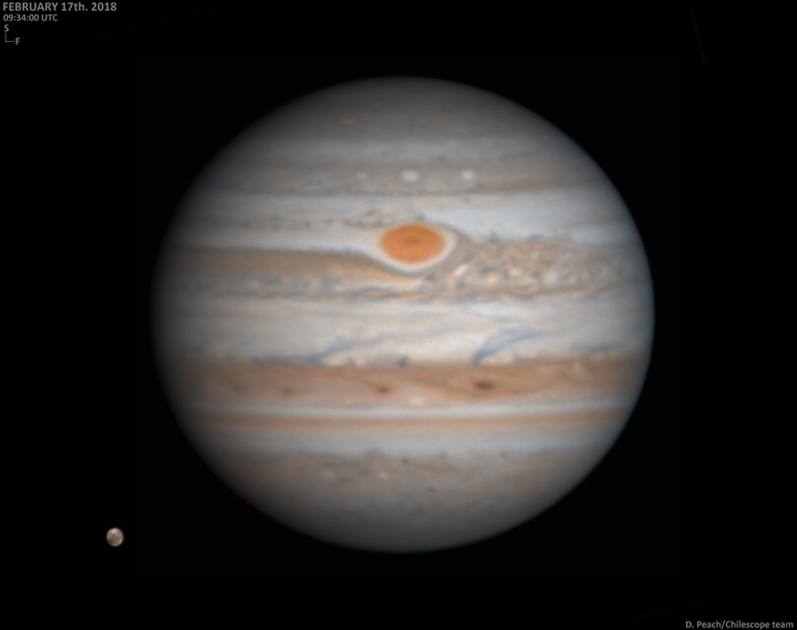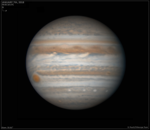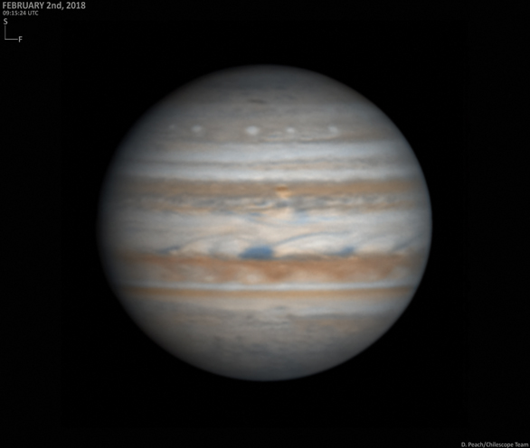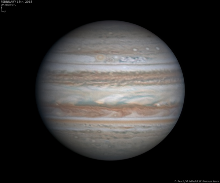 Jupiter on February 3rd, 2018. Excellent seeing conditions. The GRS and South Tropical Disturbance are well seen. Io and its shadow also visible. 1m telescope with ASI174MM.