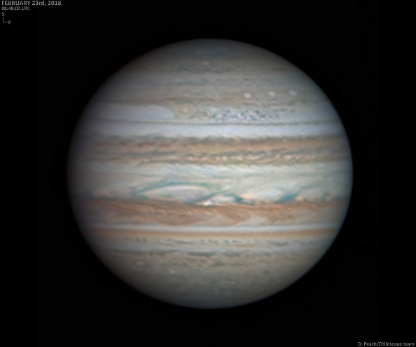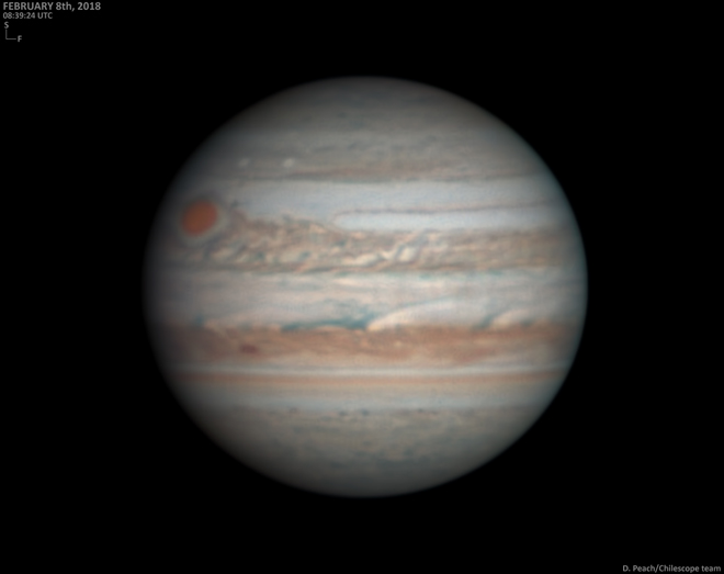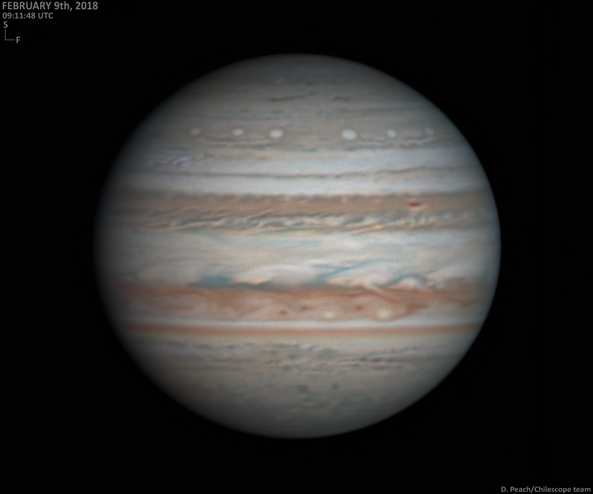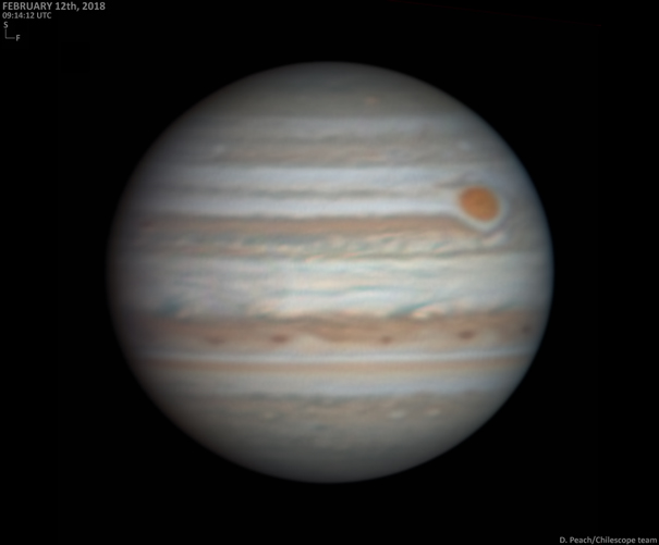 Jupiter on February 5th, 2018. Poor seeing conditions. The GRS and South Tropical Disturbance are well seen. 1m telescope with ASI174MM.