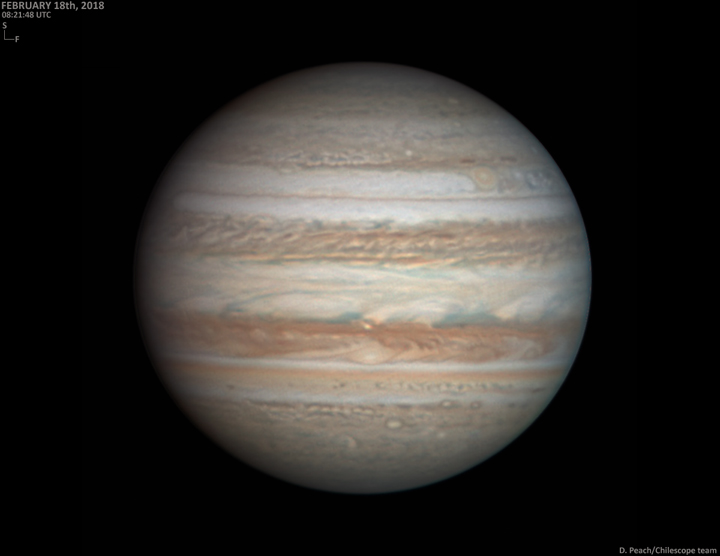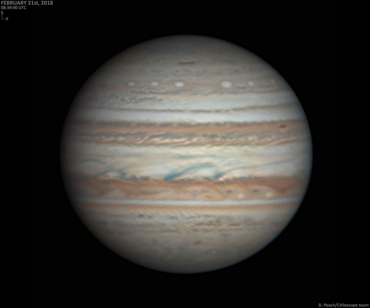 Jupiter on February 10th, 2018. Poor seeing conditions. GRS and STrD well seen. 1m telescope with ASI174MM.