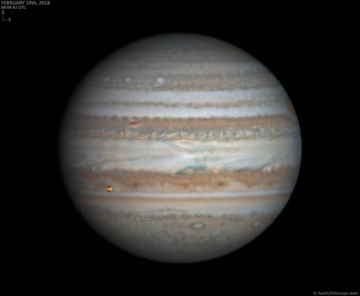 Jupiter on February 19th, 2018. Good seeing conditions. Io and shadow in transit. 1m telescope with ASI174MM.