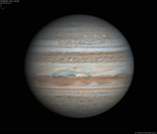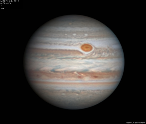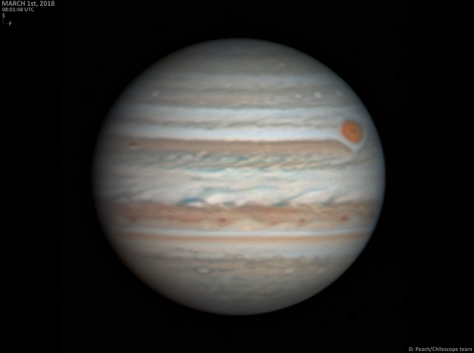Jupiter on March 4th, 2018. Fair seeing conditions. GRS and STrD well seen. 1m telescope with ASI174MM.