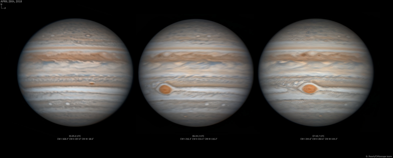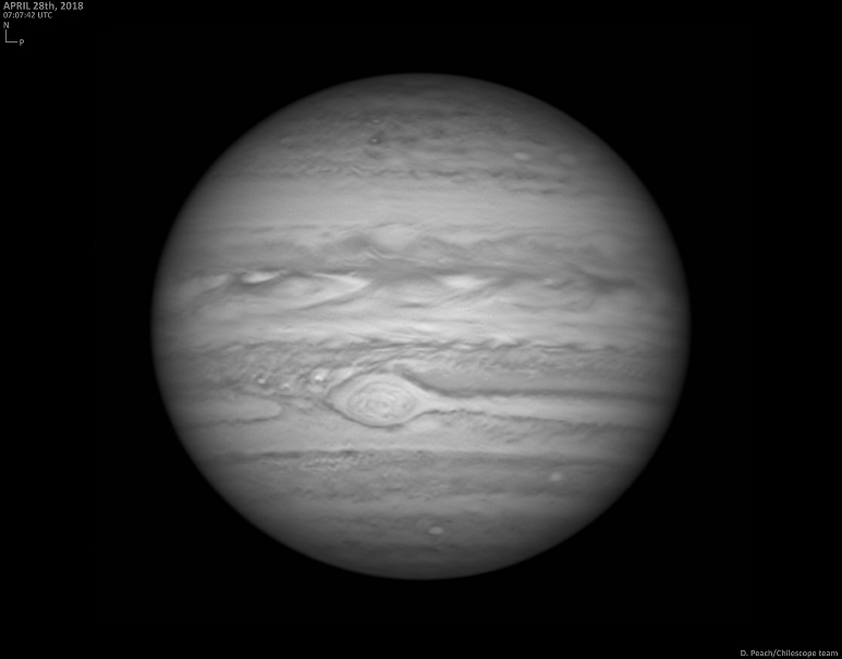 Jupiter on April 28th, 2018. Fair seeing conditions. GRS and STrD well seen. 1m telescope with ASI174MM.