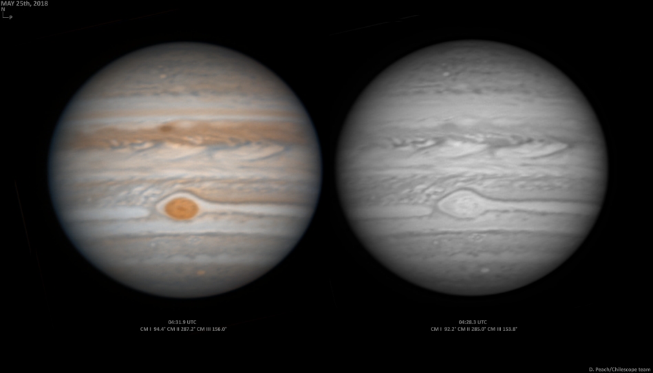 Jupiter on May 6th, 2018. Excellent seeing conditions. GRS and STrD well seen. C14 with ASI290MM.