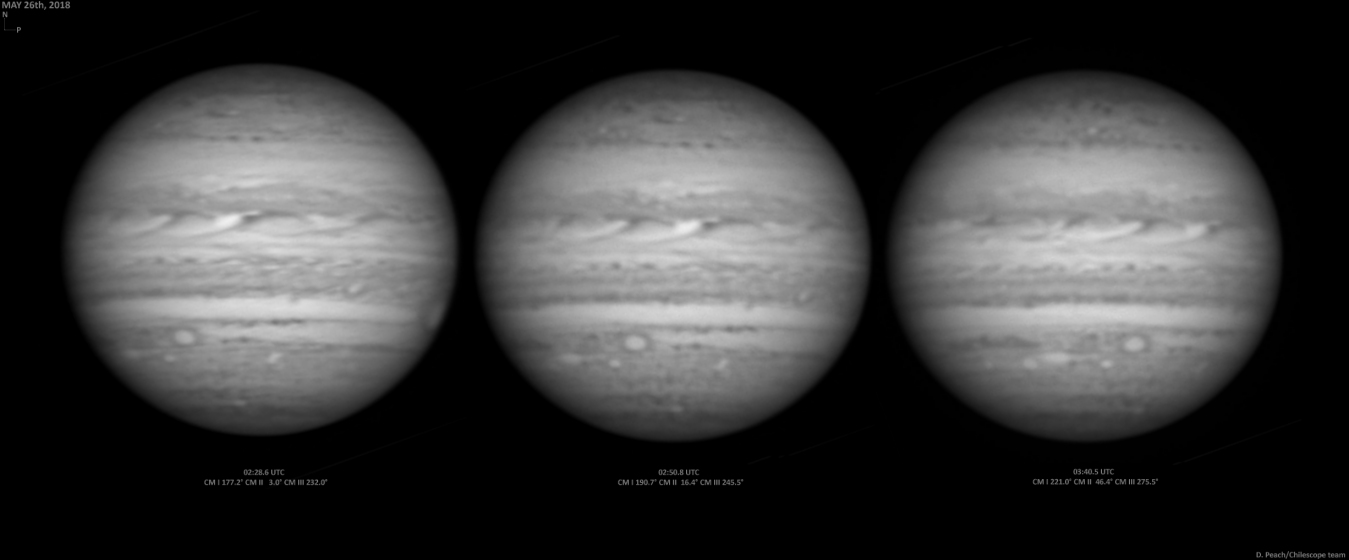 Jupiter on May 9th, 2018. Excellent seeing conditions. Oval BA well seen along with turbulent STB following it. C14 with ASI290MM.