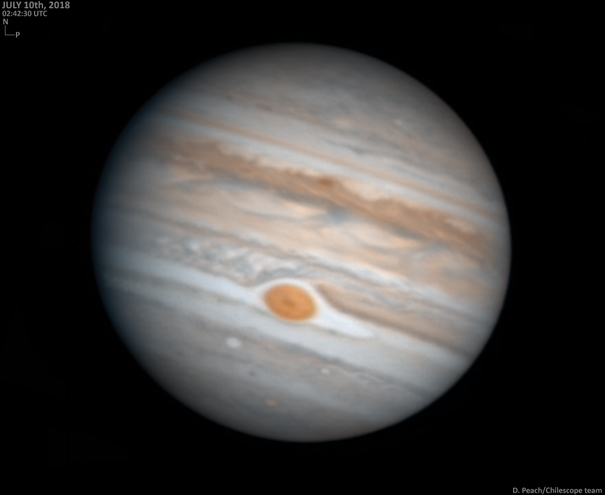 Jupiter on July 10th, 2018. Poor to fair seeing conditions. GRS and STrD well seen. 1m telescope with ASI174MM.
