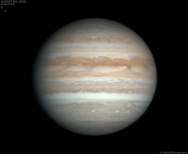 Jupiter on August 5th, 2018. Fair seeing conditions. GRS and STrD well seen. 1m telescope with ASI174MM.