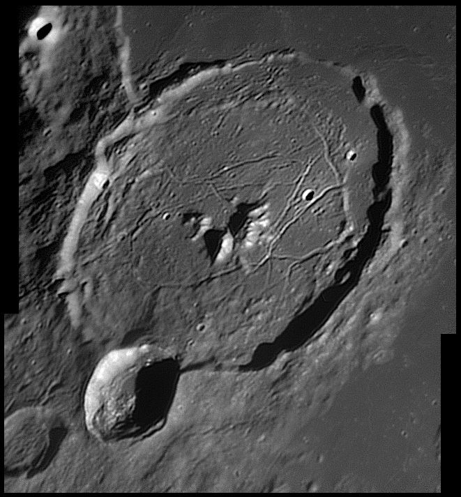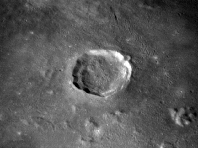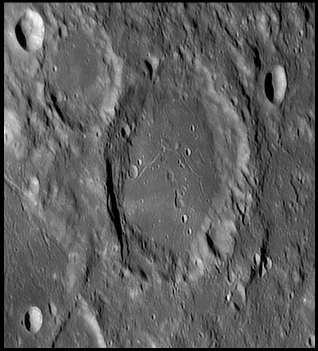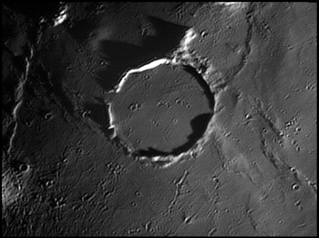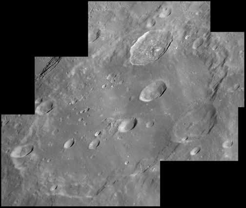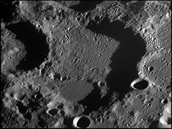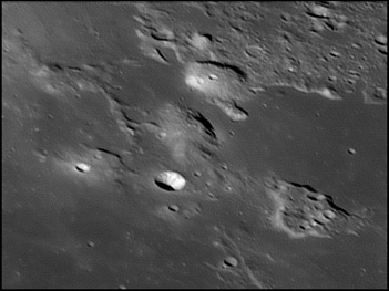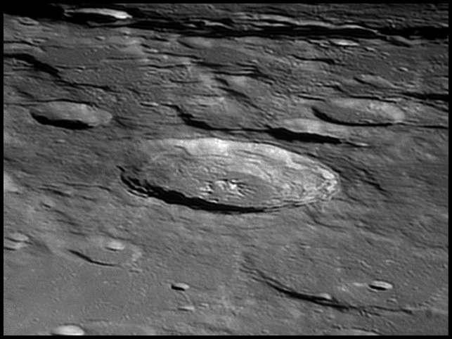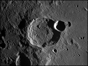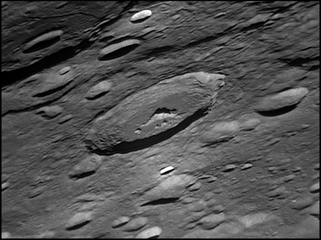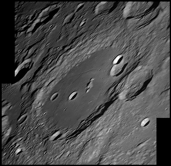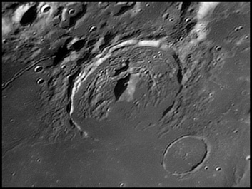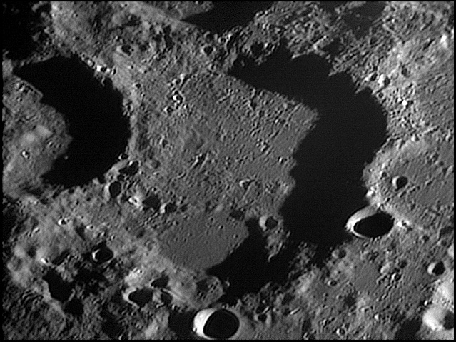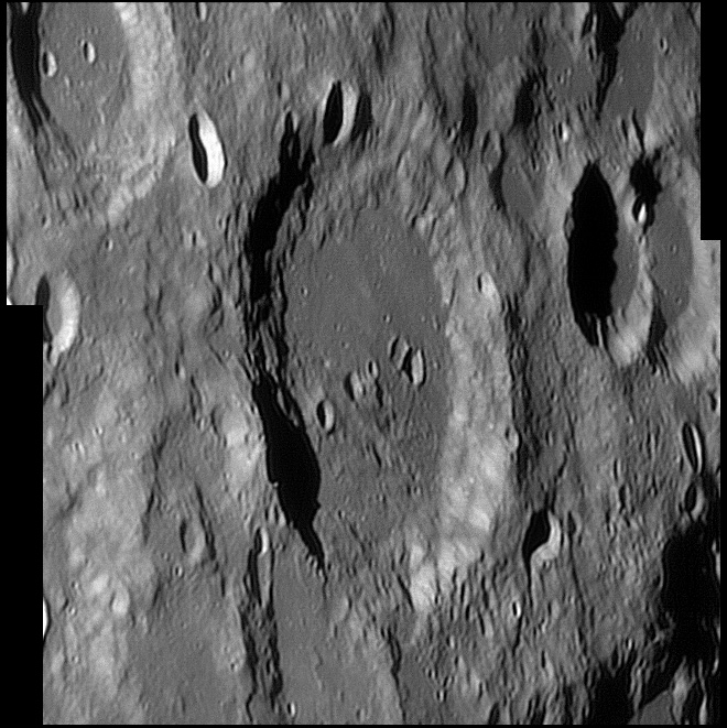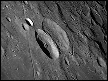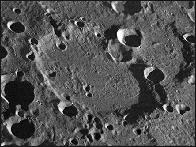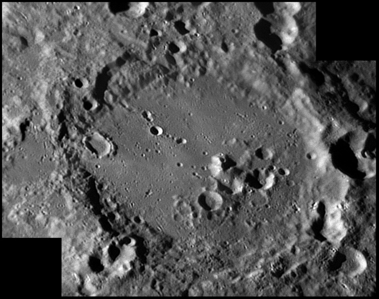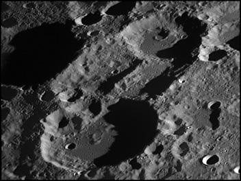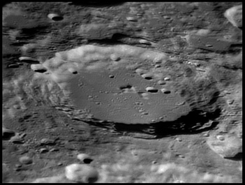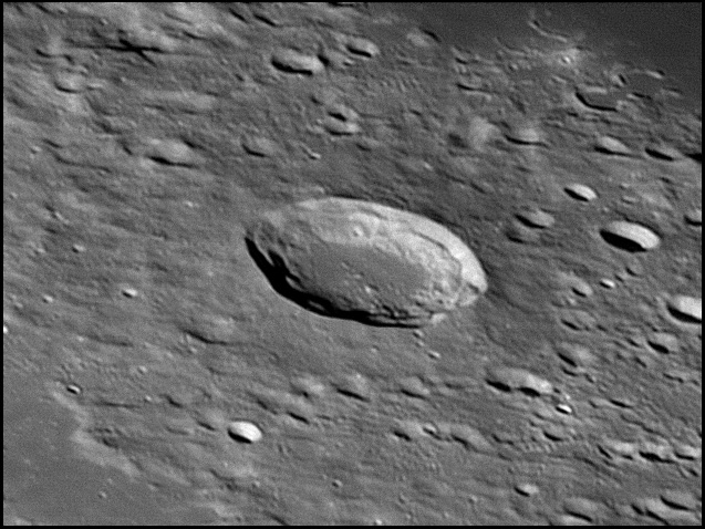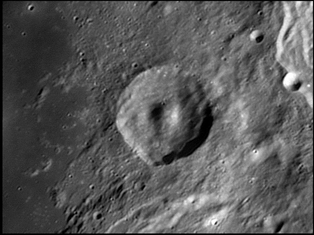 This feature is so heavily eroded and degraded by overlapping impacts that it wasn't actually recognized as a crater formation until the 20th century. The name for this formation was suggested by Eugène M. Antoniadi in 1942, and was passed during the first general assembly of the IAU in 1948. 2006/10/14. C14 @ primefocus. SKYnyx 2.0M.