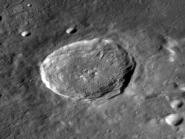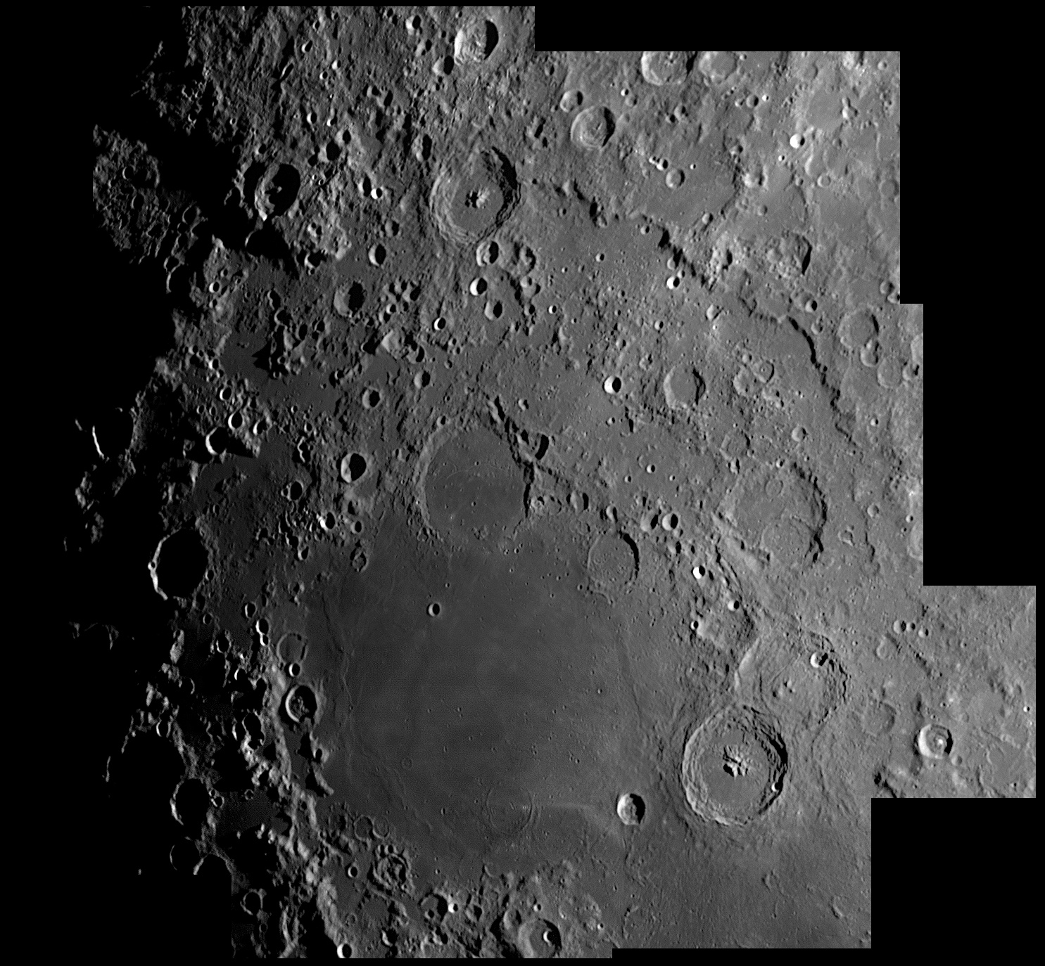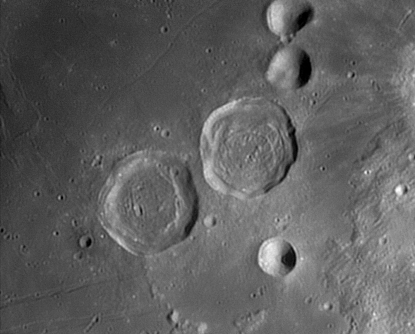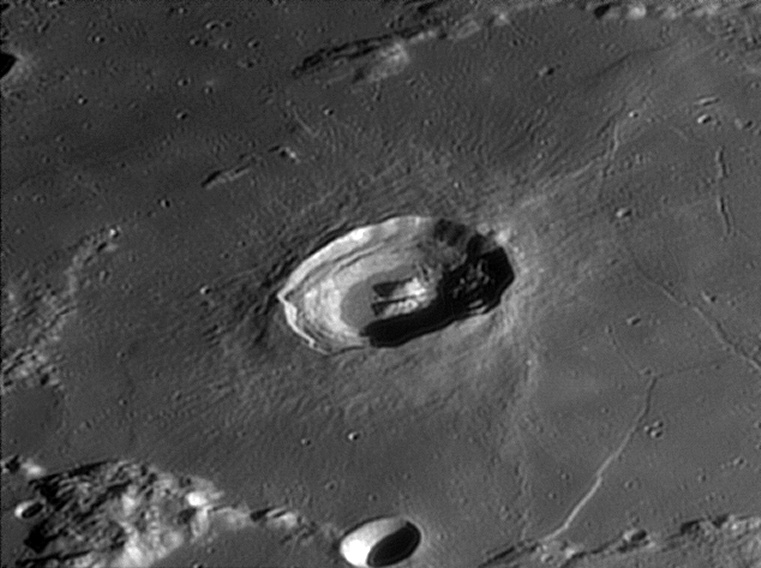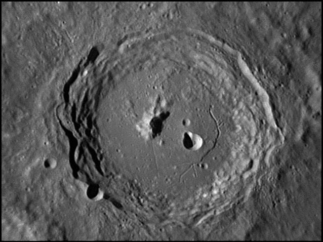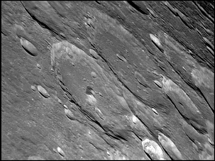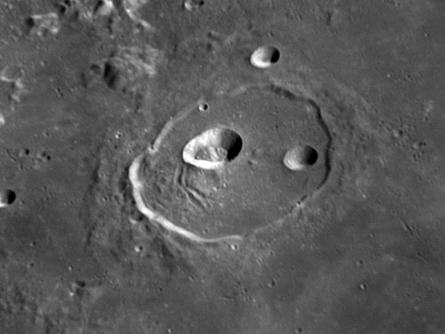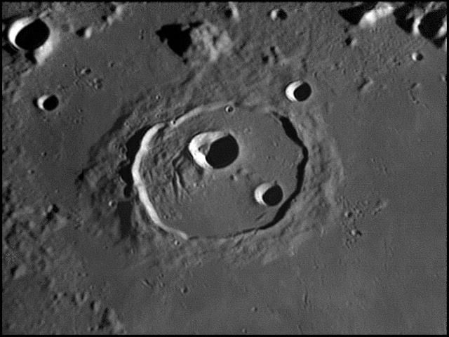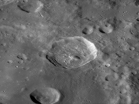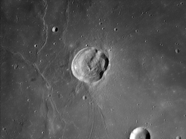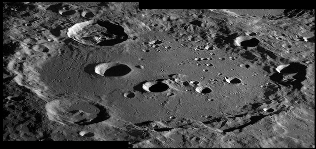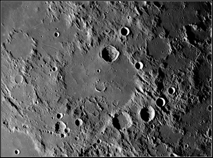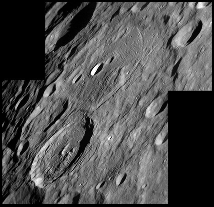 This feature is so heavily eroded and degraded by overlapping impacts that it wasn't actually recognized as a crater formation until the 20th century. The name for this formation was suggested by Eugène M. Antoniadi in 1942, and was passed during the first general assembly of the IAU in 1948. 2006/10/14. C14 @ primefocus. SKYnyx 2.0M.