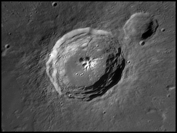 This crater was drawn on lunar maps as early as 1645, when Antonius Maria Schyrleus de Rheita depicted the bright ray system. 2006/04/08, 09, 19, & 20. C14 @ F41. LU075M.