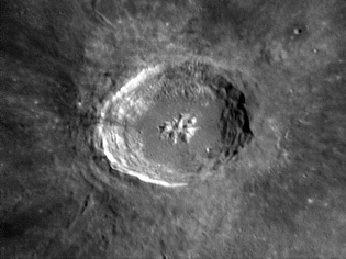 Copernicus is a prominent impact crater located on the eastern Oceanus Procellarum. The crater Copernicus is estimated to be about 800 million years old, the time marking the start of the Copernican era in the Lunar geologic timescale. Due to its relative youth, the crater has received very little erosion and it remains sharp and well-defined.