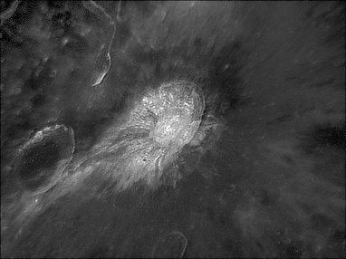 Aristarchus. The brightest of the major lunar features, it can be seen as a bright spot with the naked eye. The reason the crater appears so bright is due to its relatively young age of around 450 million years. This view obtained with the Sun high in the sky reveals clearly the ejecta blanket surrounding the crater. 2009/09/09. C14 & SKYnyx 2.0M.