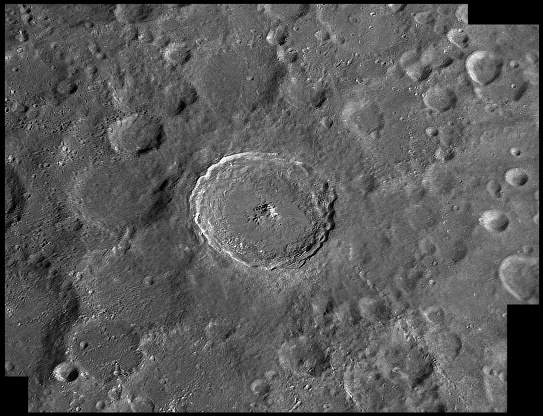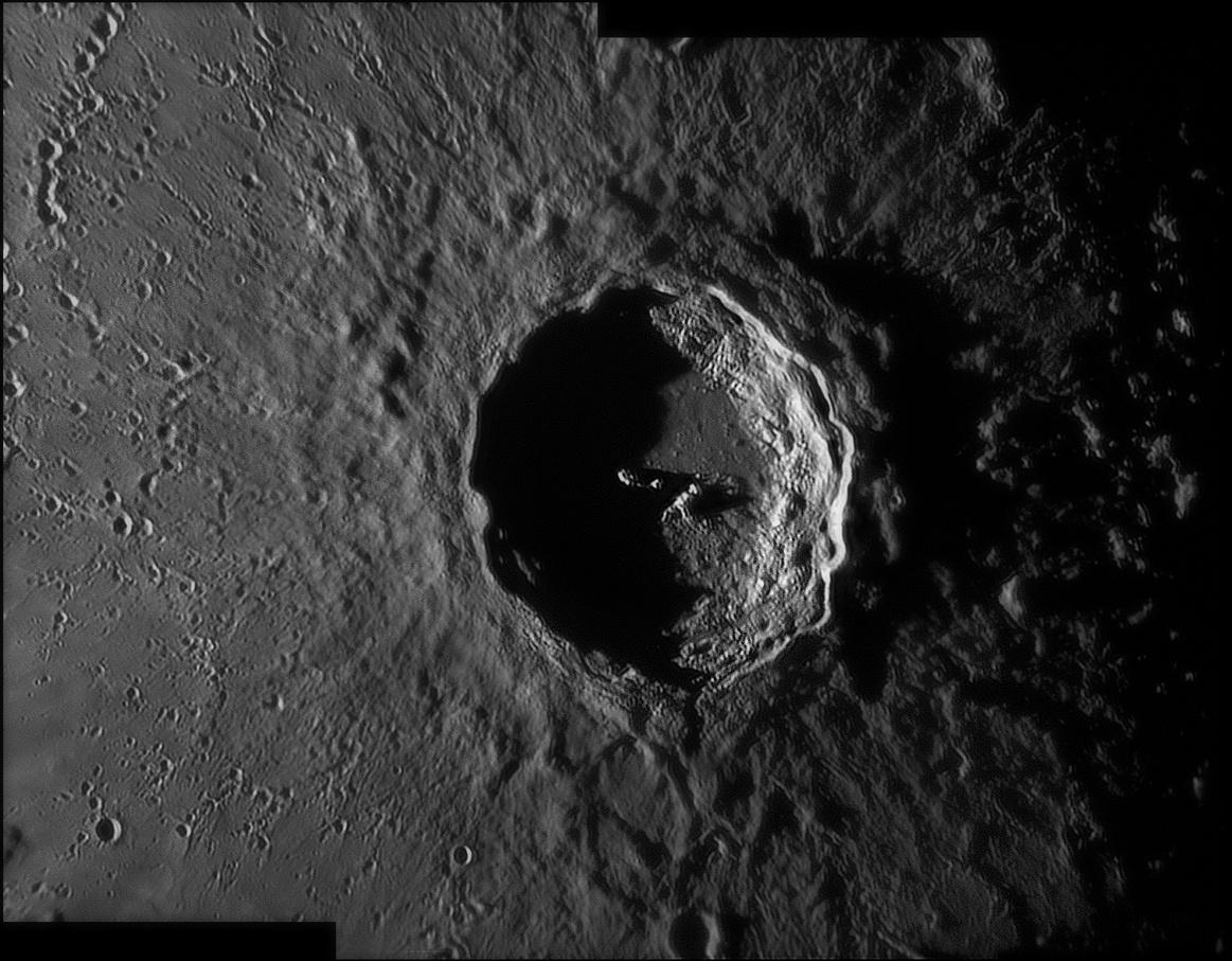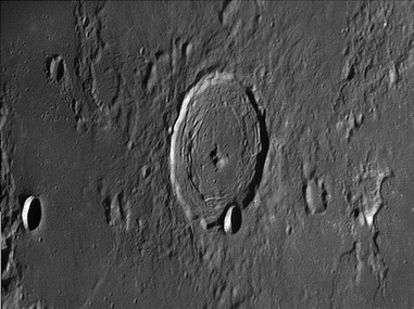 Albategnius. A large impact crater located in the central highlands. It is heavily worn indicating its great age (3 billion years.) It features in one of Galileos earliest drawings in 1610 when he sketched the lunar terminator. 2009/09/09. C14 & SKYnyx 2.0M.
