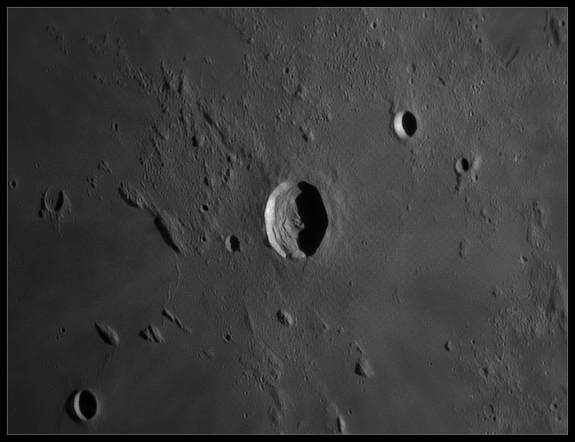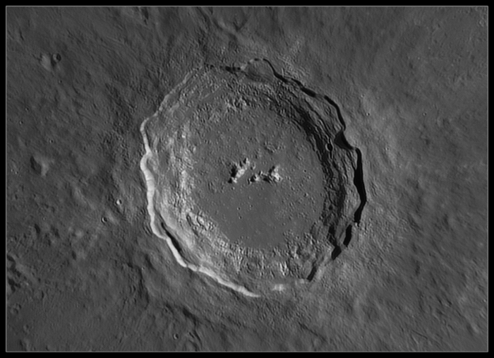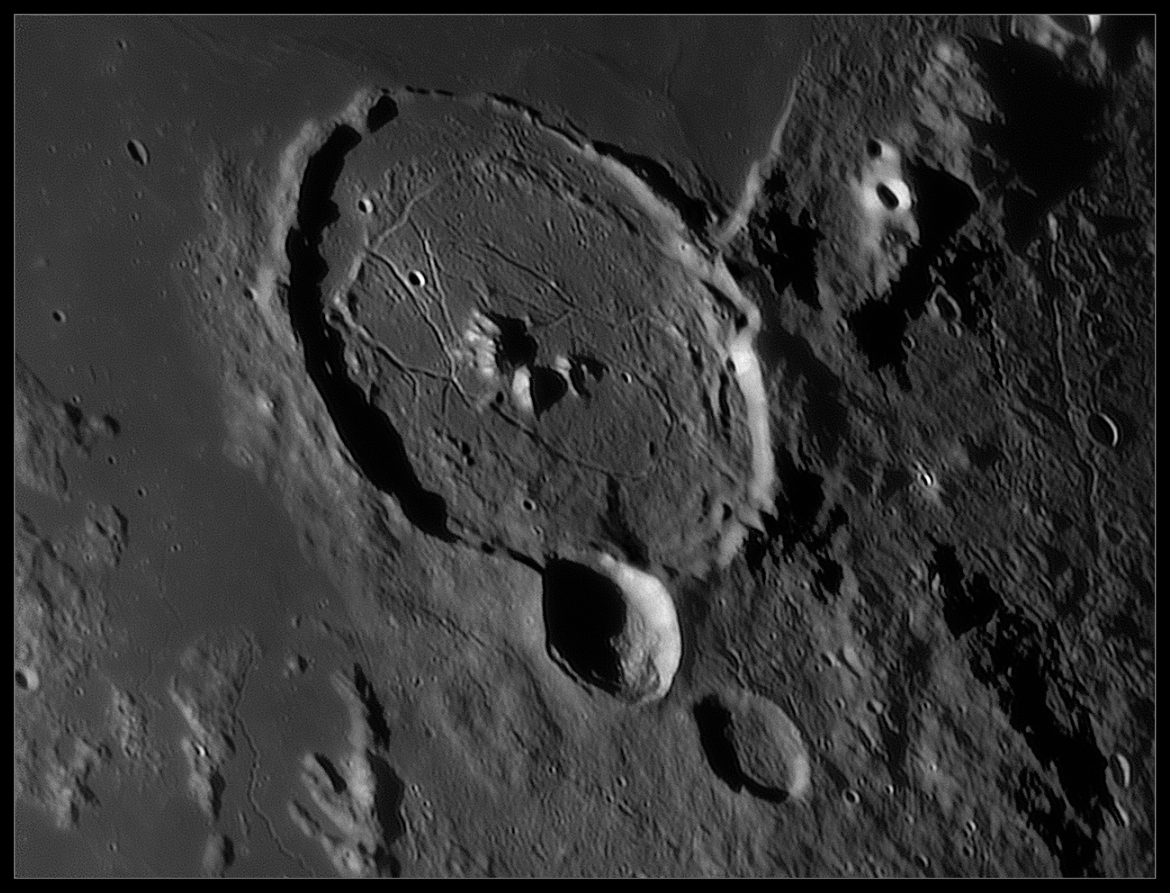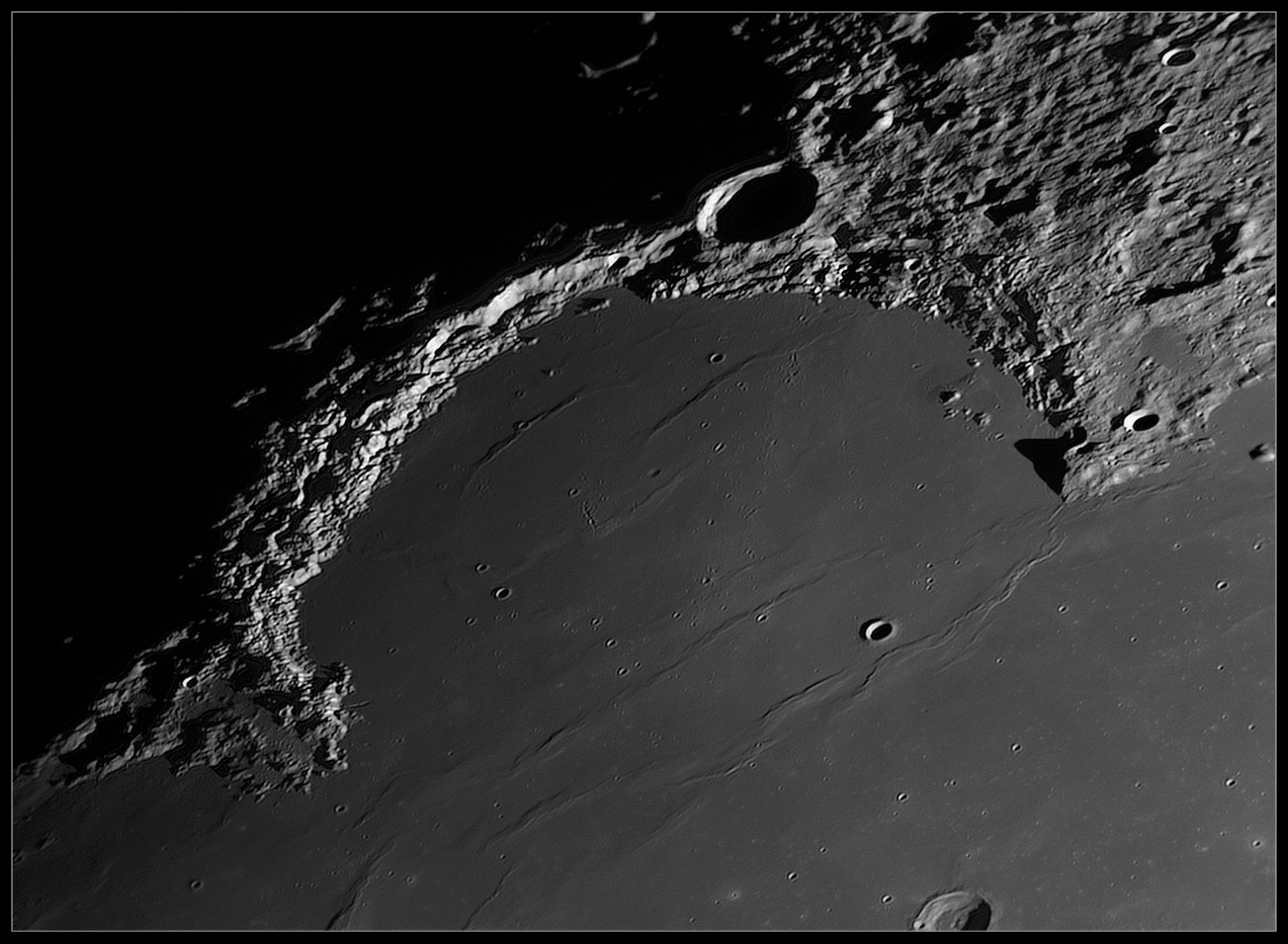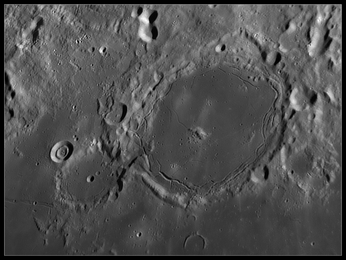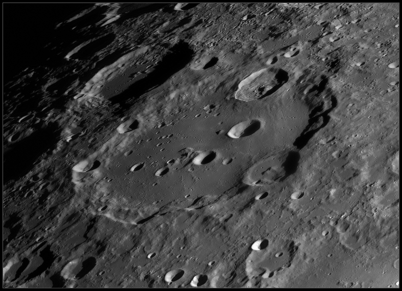 Unfortunately most of the data from the session was lost due to a "senior moment" on my part. None the less, this crater is rarely well observable from Earth being located within the zone of libration on the eastern limb. This means we only ever get rare oblique views of it such as presented here. It is 207km in diameter and displays a fascinating patchwork of geological features. Were it further onto the lunar disk it would surely be one of the finest craters visible to Earth based observers.