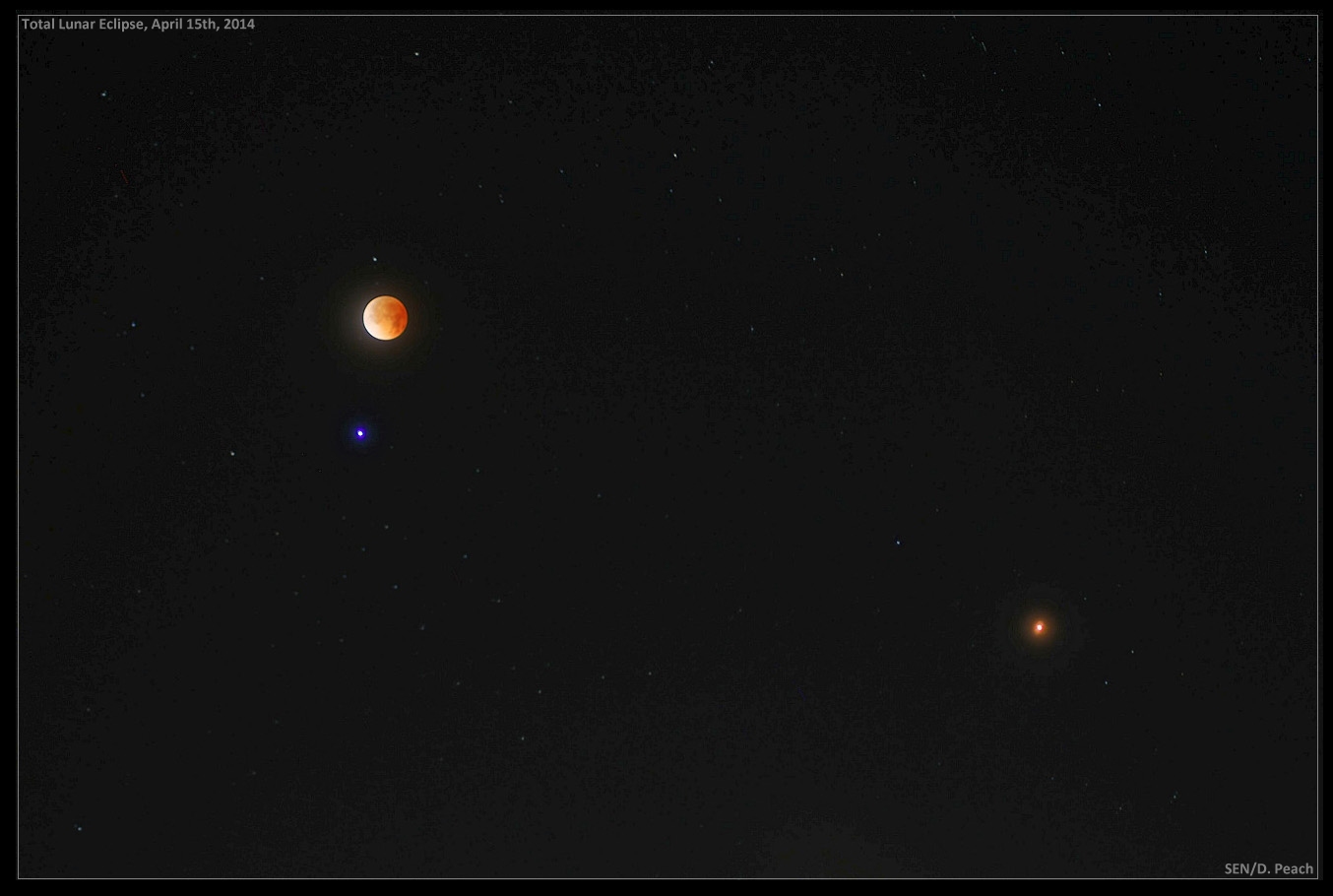 Total Lunar Eclipse April 15th, 2014. Mars and Spica also in view.