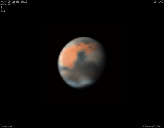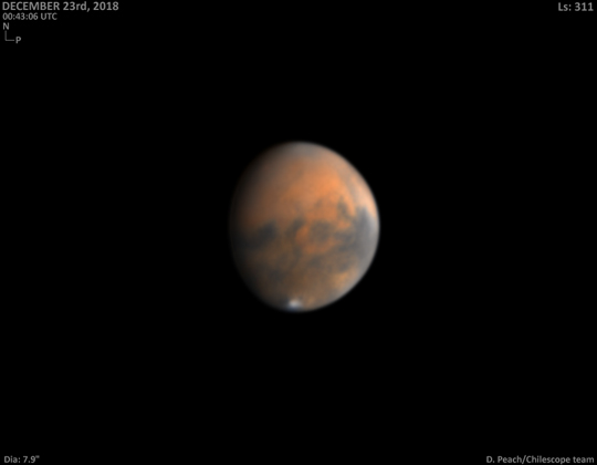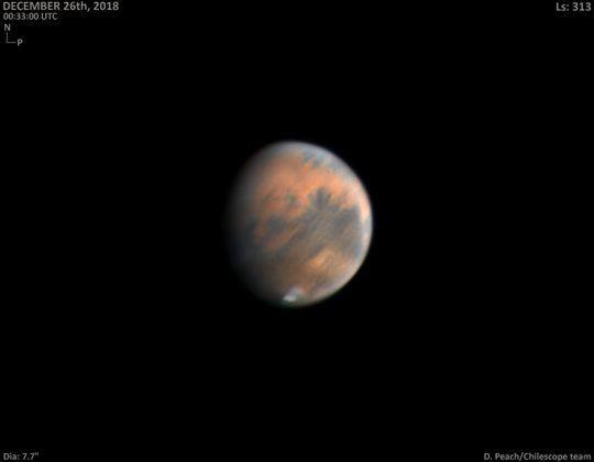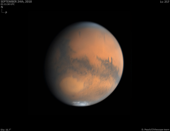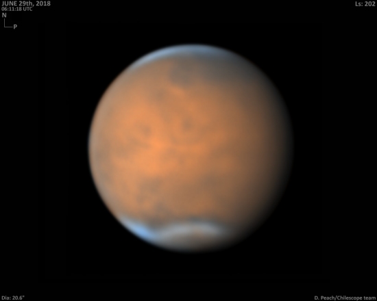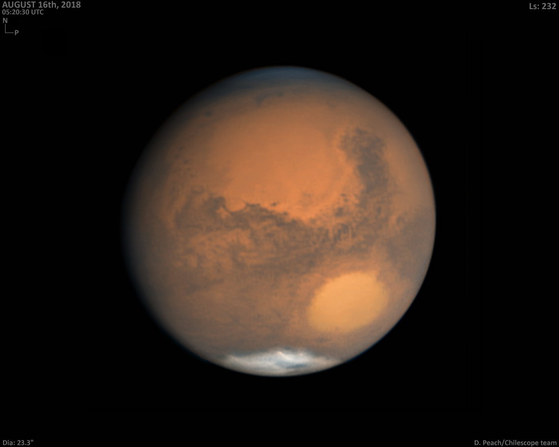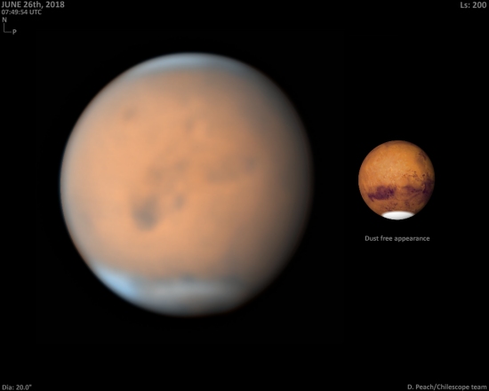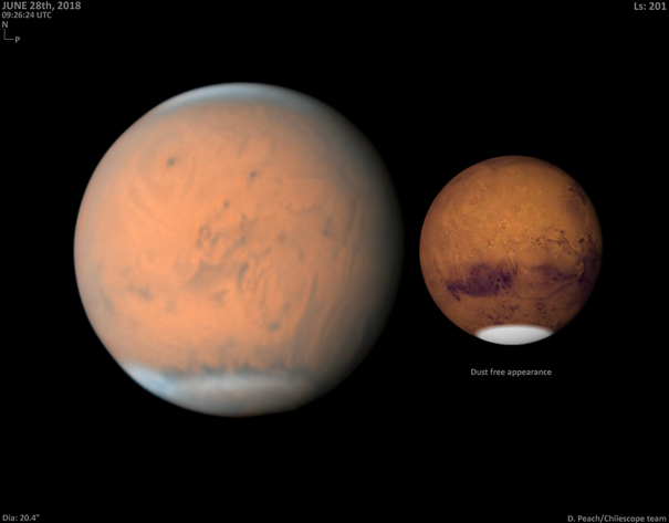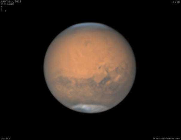 Close approach: July 31st, 2018. Apparent Opposition Diameter: 24.3". Declination:-25°01'. Constellation: Capricornus.