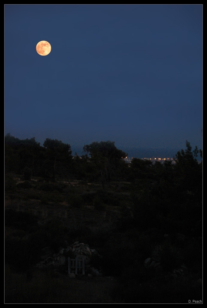 Full Moon rising over Limassol. Overlooking Limassol from Souni on the island of Cyprus.
