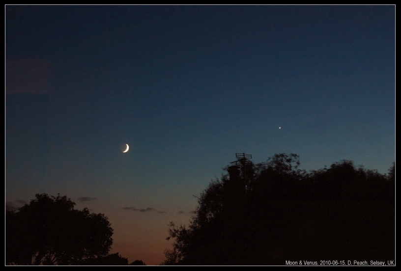 The Moon & Venus at Sundown. From Selsey, West Sussex, UK. June 17th, 2010.