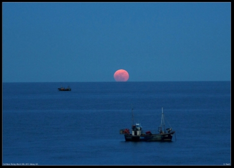Full Moon rising over the sea. Seen from Selsey, West Sussex, UK on March 19th, 2011.