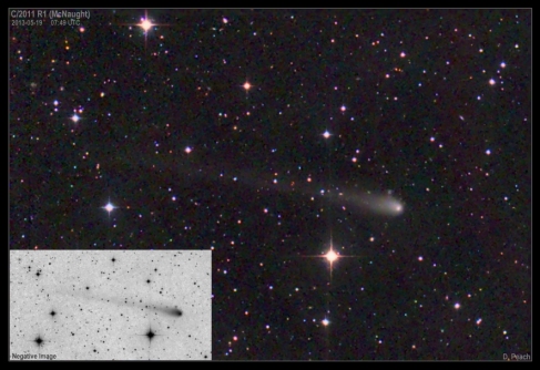 Discovered by Rob McNaught at Siding Spring Observatory, Australia in September 2011. It passed perihelion back in October 2012 but remains visible in modest amateur telescopes at the time of writing (being around magnitude 13-14.)