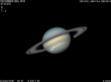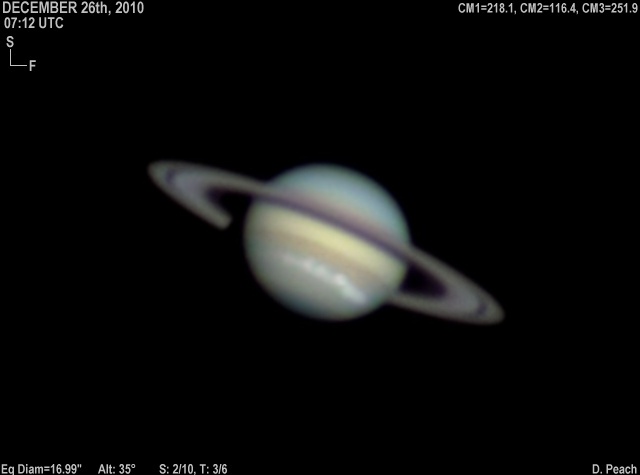 Saturn, December 26th, 2010. Very poor seeing. The giant storm in the North Temperate region is very prominent.