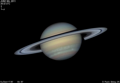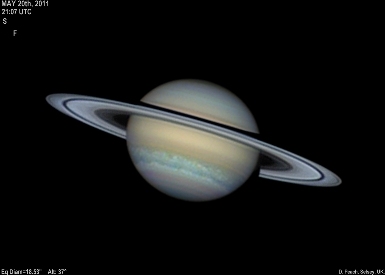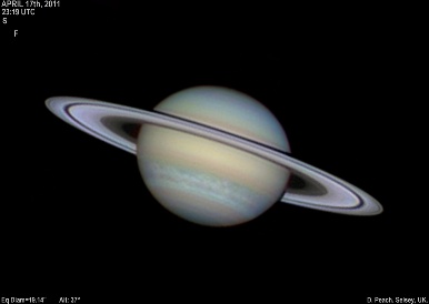 Saturn, April 17th, 2011. Good conditions. Stormy North Tropical Zone is nicely visible.