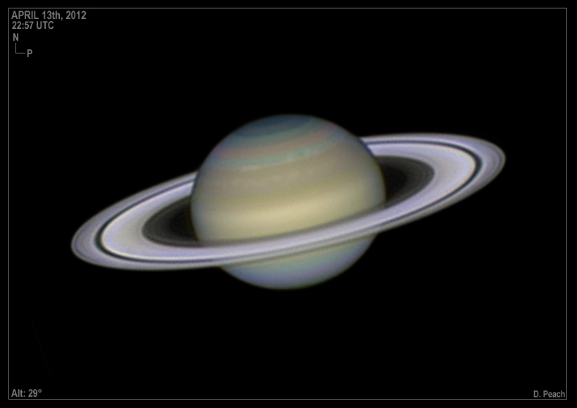 Saturn, April 13th, 2012. Good seeing and only two days from opposition.