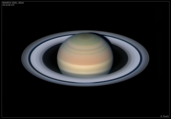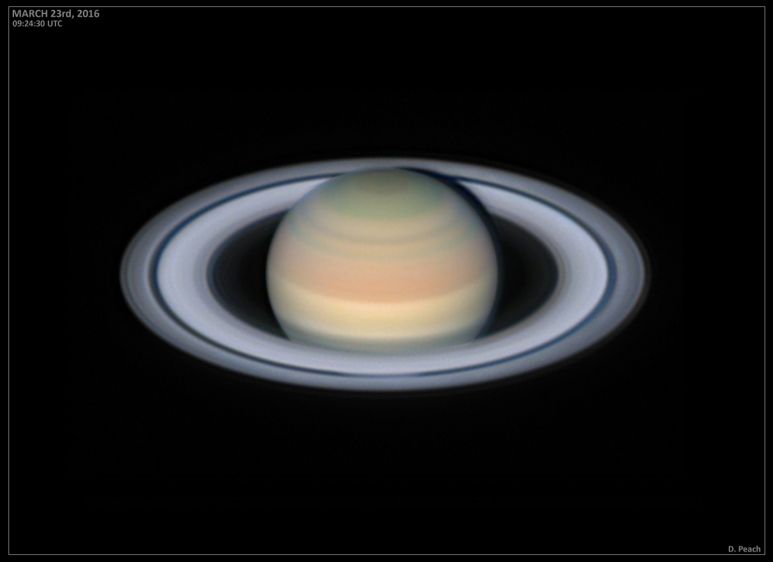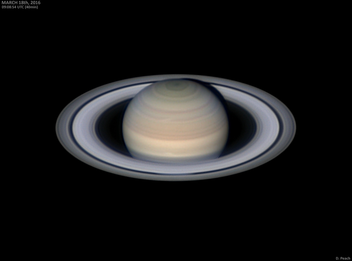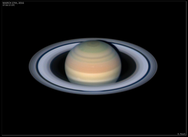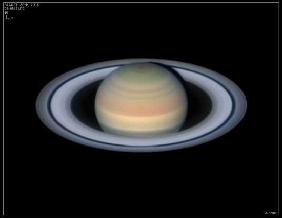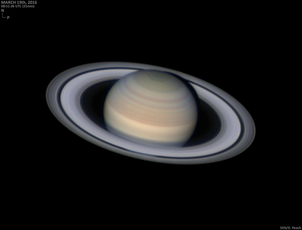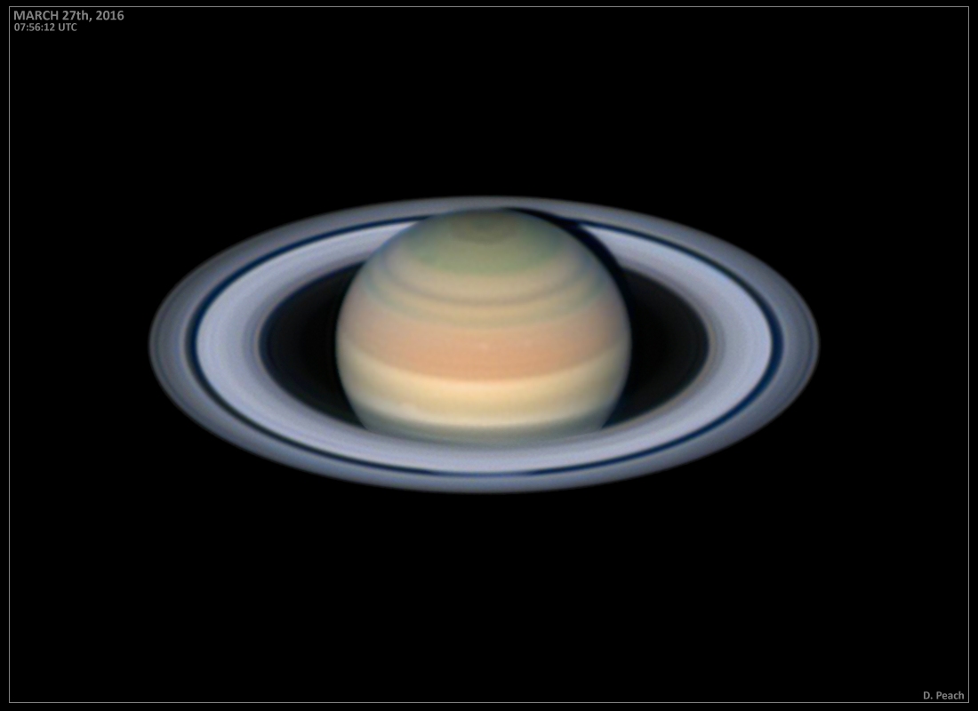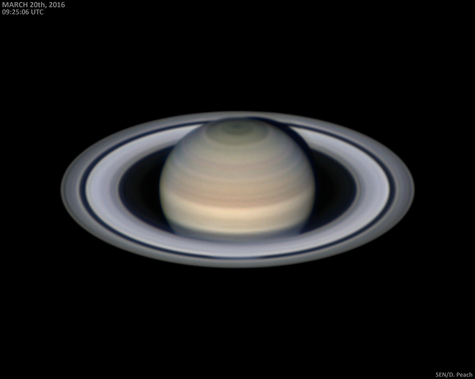 March 27th, 2016. Good conditions. Small storms and the polar hexagon are clearly visible.