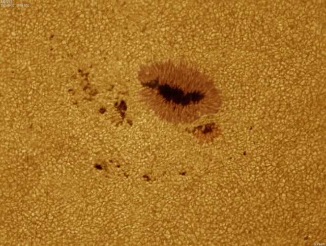 July 20th, 2013 - AR11793: Fair seeing conditions. The main spot continues to develop now looking more elongated than a few days previously.
