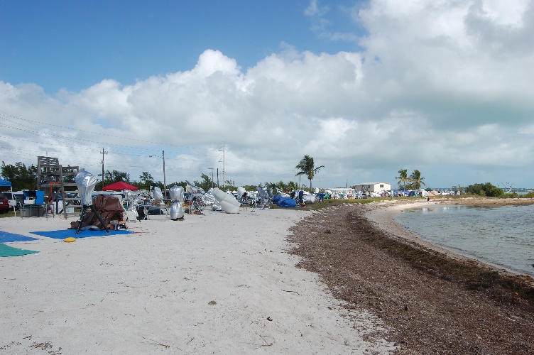 Above: Sunset from the WSP site on West Summerland Key. A beachfront full of telescopes get ready to swing into action.