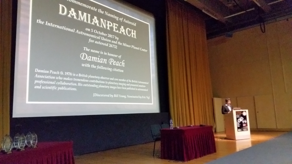 Presentation of the plaque for asteroid 26732 by discoverer Bill Yeung. A proud moment and a great honour to have the discoverer present the award!
