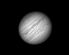 Jupiter on October 13th, 1999. These images taken in short Blue wavelengths reveal the dark GRS clearly. The shadow of Io and Io itself can also be seen in these images.