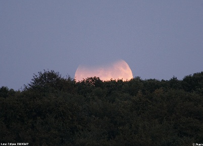 Below are images taken of the partial lunar eclipse on September 7th, 2006. This eclipse was particularly interesting as it occurred at moonrise. Weather conditions were excellent for the event and fine views were enjoyed. All images were taken with a my Canon 1D MkII and 100-400mm L IS USM lens.
