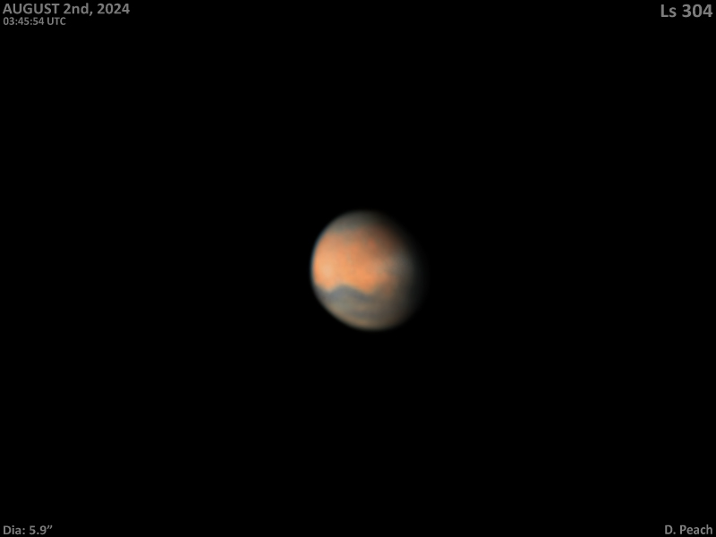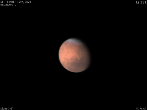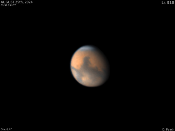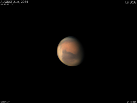 August 21st, 2024 - Extensive dust clouds over Chryse at the left side of the disk.